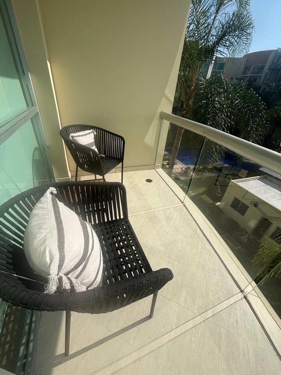 Sala, comedor, balcón de excelente tamaño con vista a la alberca, cocina con barra de granito.