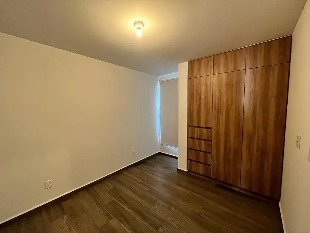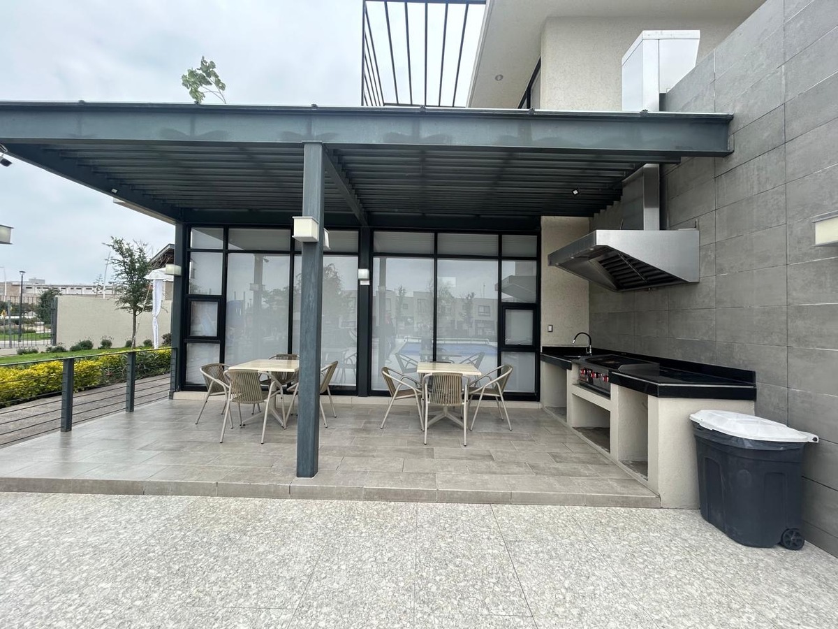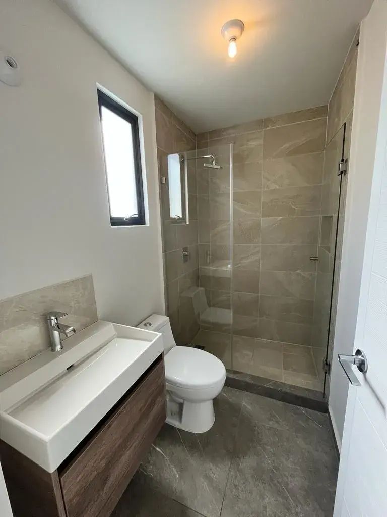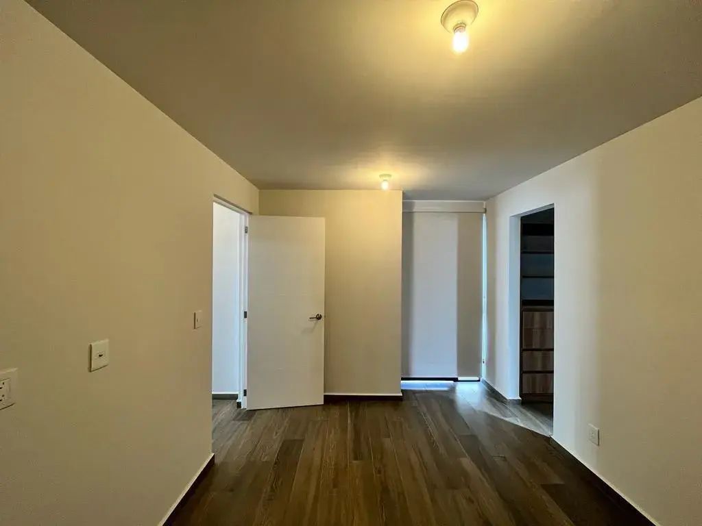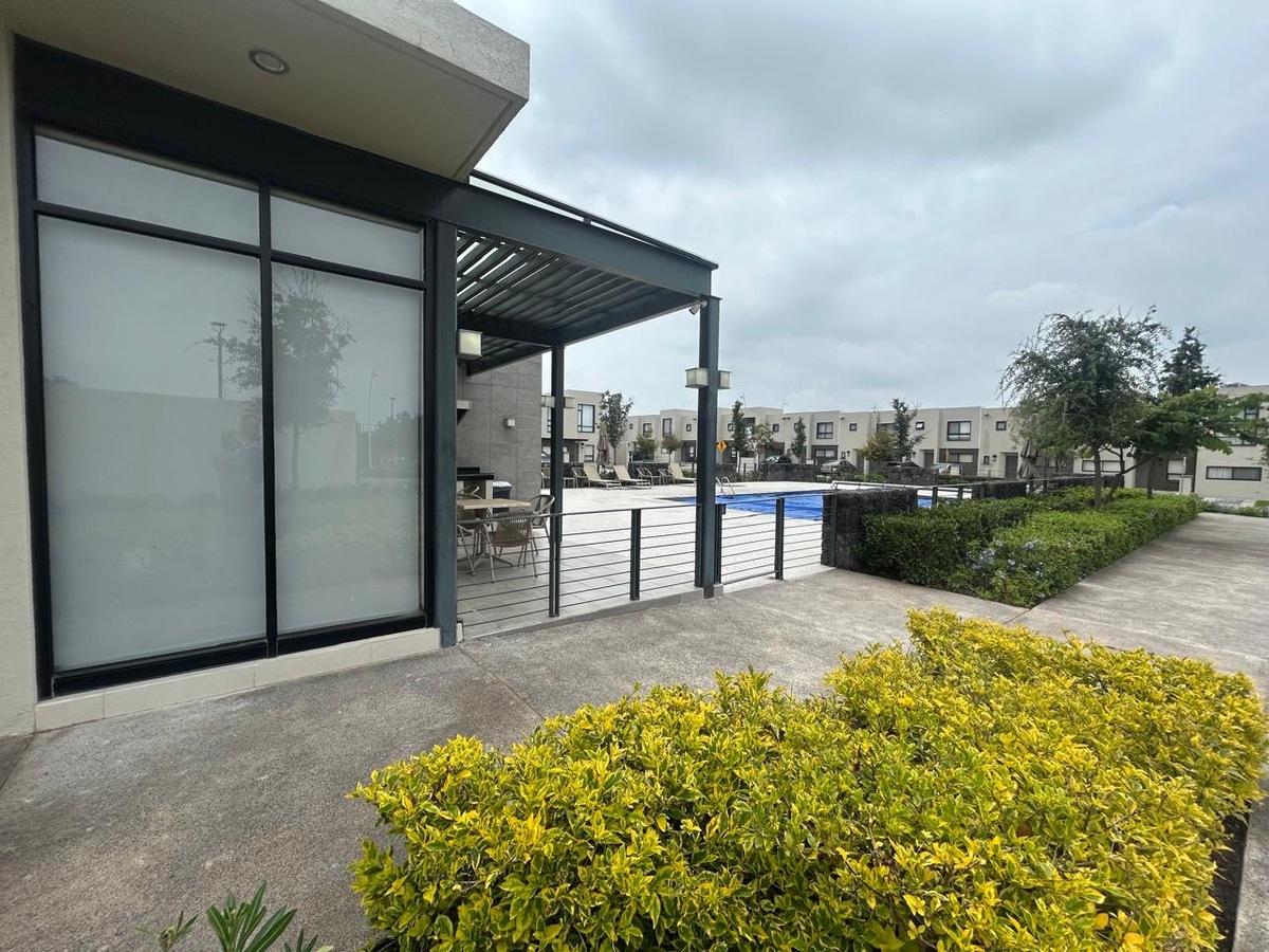 Departamento en Renta en esquina de 2 recámaras con estudio y patio con excedente de terreno pasillo lateral, cuenta con vigilancia 24/7, excelentes acabados, persianas y blackout, amenidades como alberca, asador, gimnasio completo, salón de juegos, co working, 1 lugar de estacionamiento, juegos infantiles.