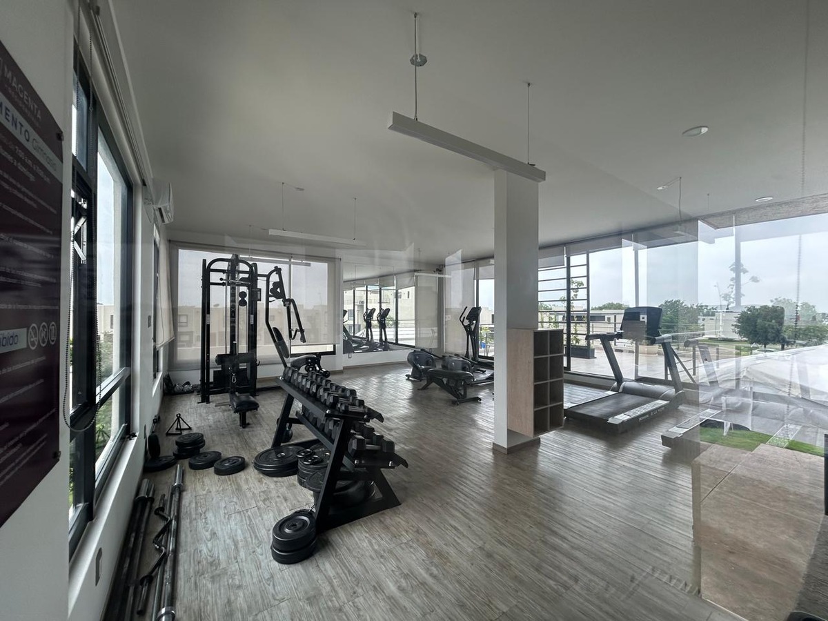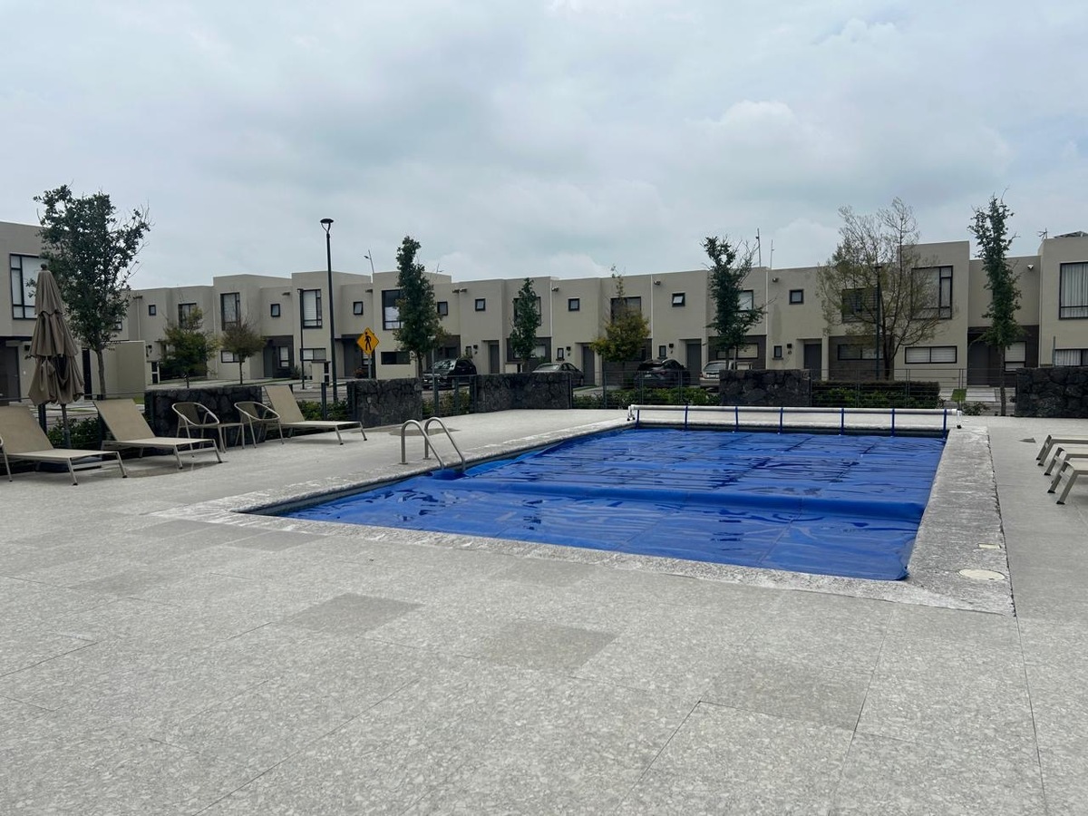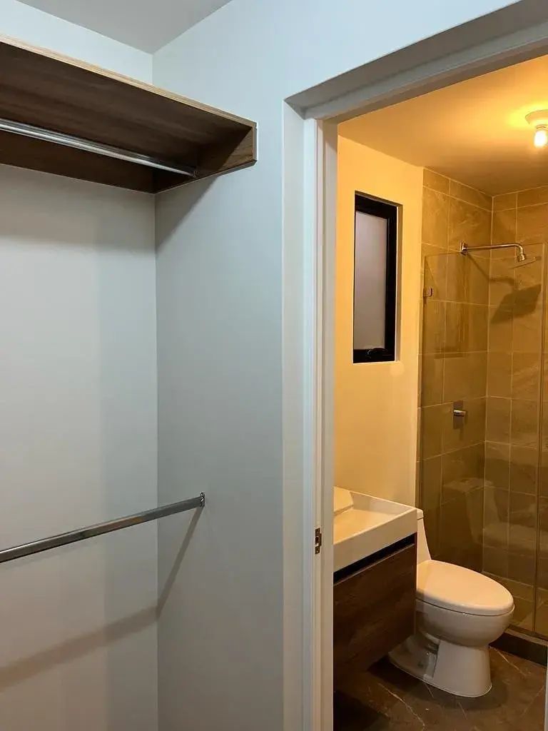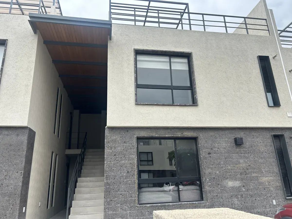 Departamento en Renta en esquina de 2 recámaras con estudio y patio con excedente de terreno pasillo lateral, cuenta con vigilancia 24/7, excelentes acabados, persianas y blackout, amenidades como alberca, asador, gimnasio completo, salón de juegos, co working, 1 lugar de estacionamiento, juegos infantiles.