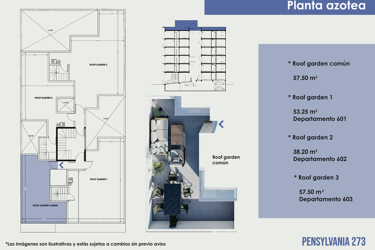 The exclusive apartments are located on Pennsylvania Street between San Antonio and California, in the Col. Ciudad de los Deportes. It is situated between important access roads such as Río Becerra, San Antonio, and Insurgentes Sur, in a mixed-use block, which provides exceptional added value.