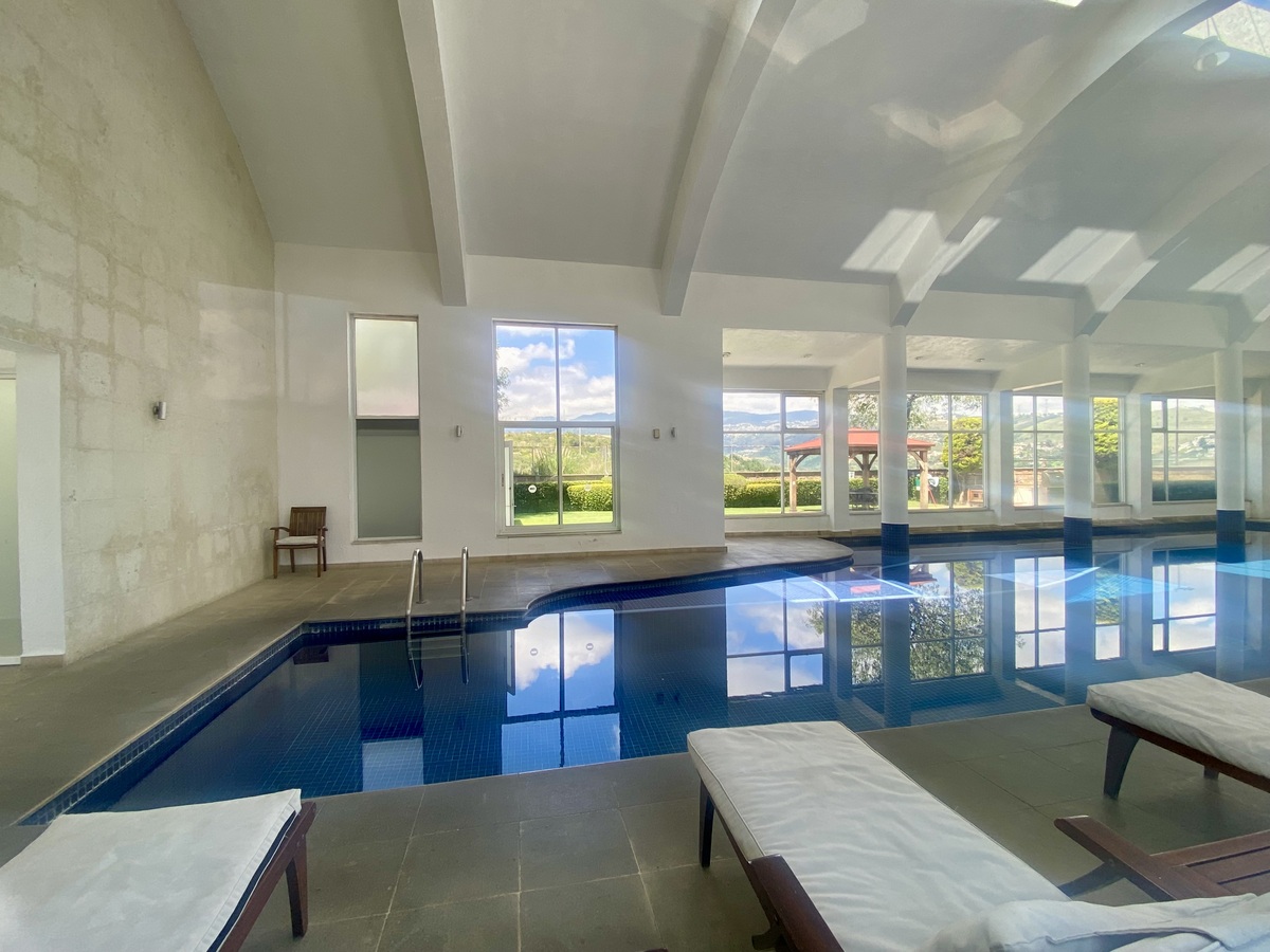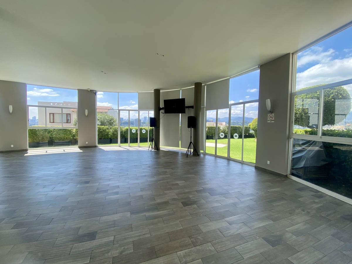 Amenidades del conjunto: gimnasio, spa, alberca climatizada, salón de usos múltiples, ludoteca, juegos infantiles, áreas de asadores, canchas de tenis y pádel.