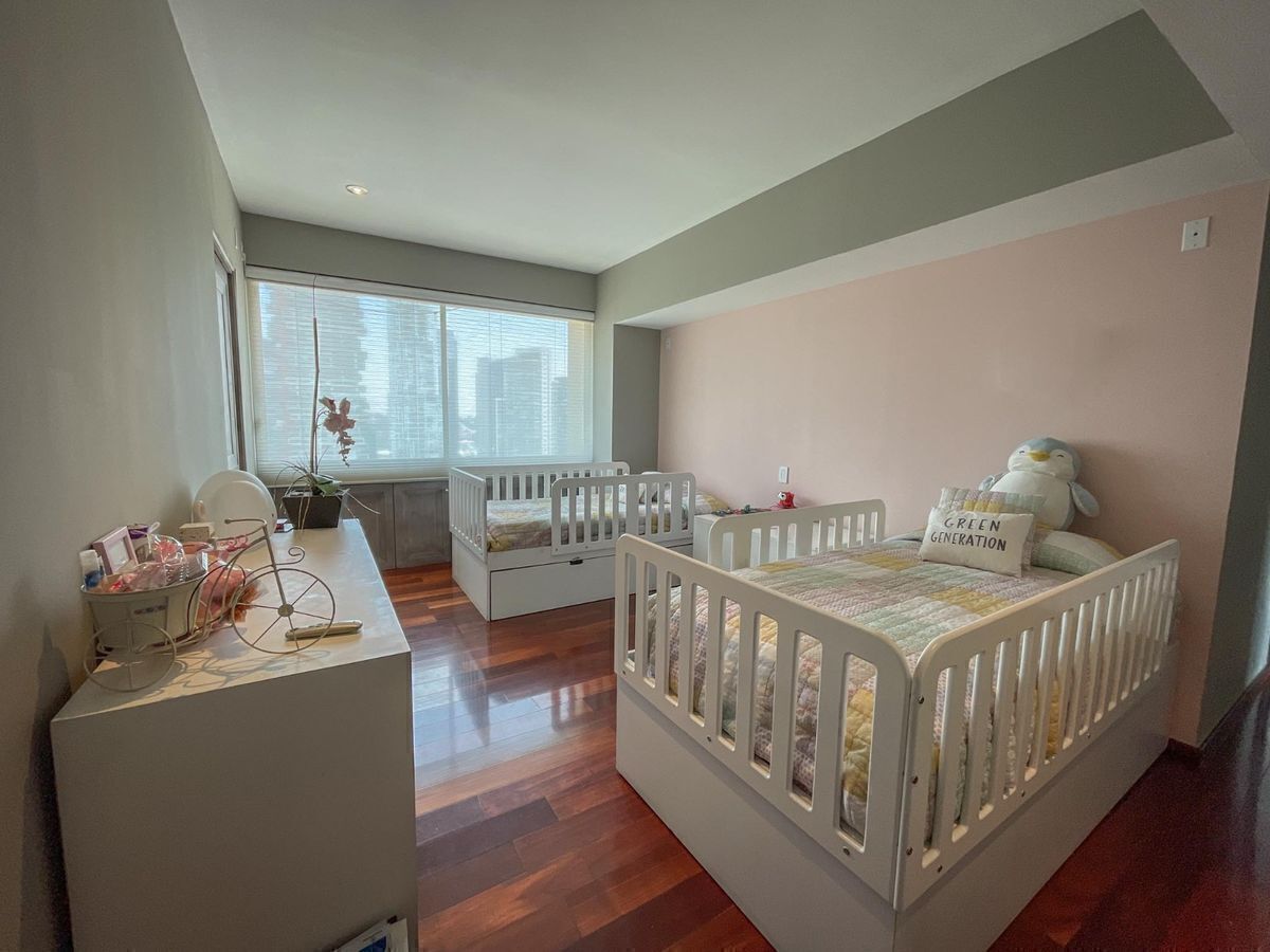 El departamento cuenta con tres amplias recámaras, cada una con su propio vestidor y baño privado, lo que proporciona privacidad y comodidad para todos los residentes. Además, hay un baño de visitas adicional para mayor conveniencia.
