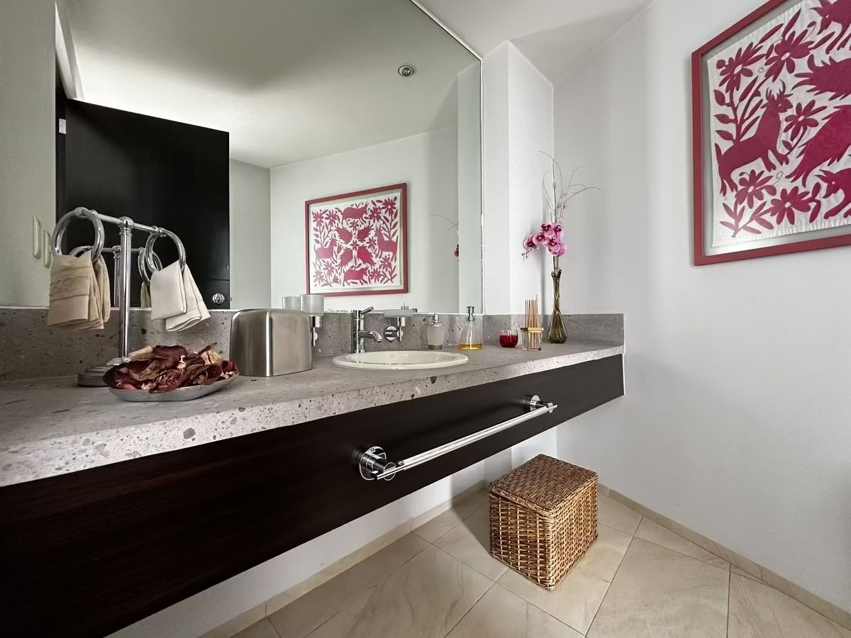 Located in Bosque de Minas, La Herradura is this bright 3-bedroom apartment, the master bedroom with bathroom and walk-in closet, and the secondary bedrooms share a bathroom. Social area with guest bathroom, kitchen, laundry room, and service room. 2 parking spaces and storage room. Amenities: Pool, garden, party room, and playground for children.Ubicado en Bosque de Minas, La Herradura se encuentra este iluminado departamento de 3 recámaras, la principal con baño y vestidor y las secundarias comparten baño. Area social con baño de visitas, cocina, cuarto de lavado y cuarto de servicio. 2 estacionamientos t bodega. Amenidades: Alberca, jardín, salon de fiestas y juegos para niños.