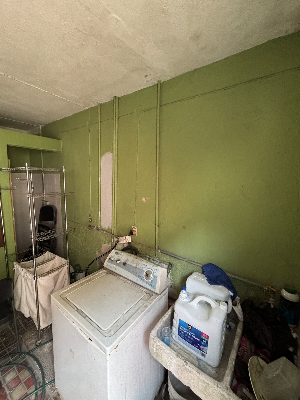Recepción equipada con barra, TV, frigobar y área de lavandería