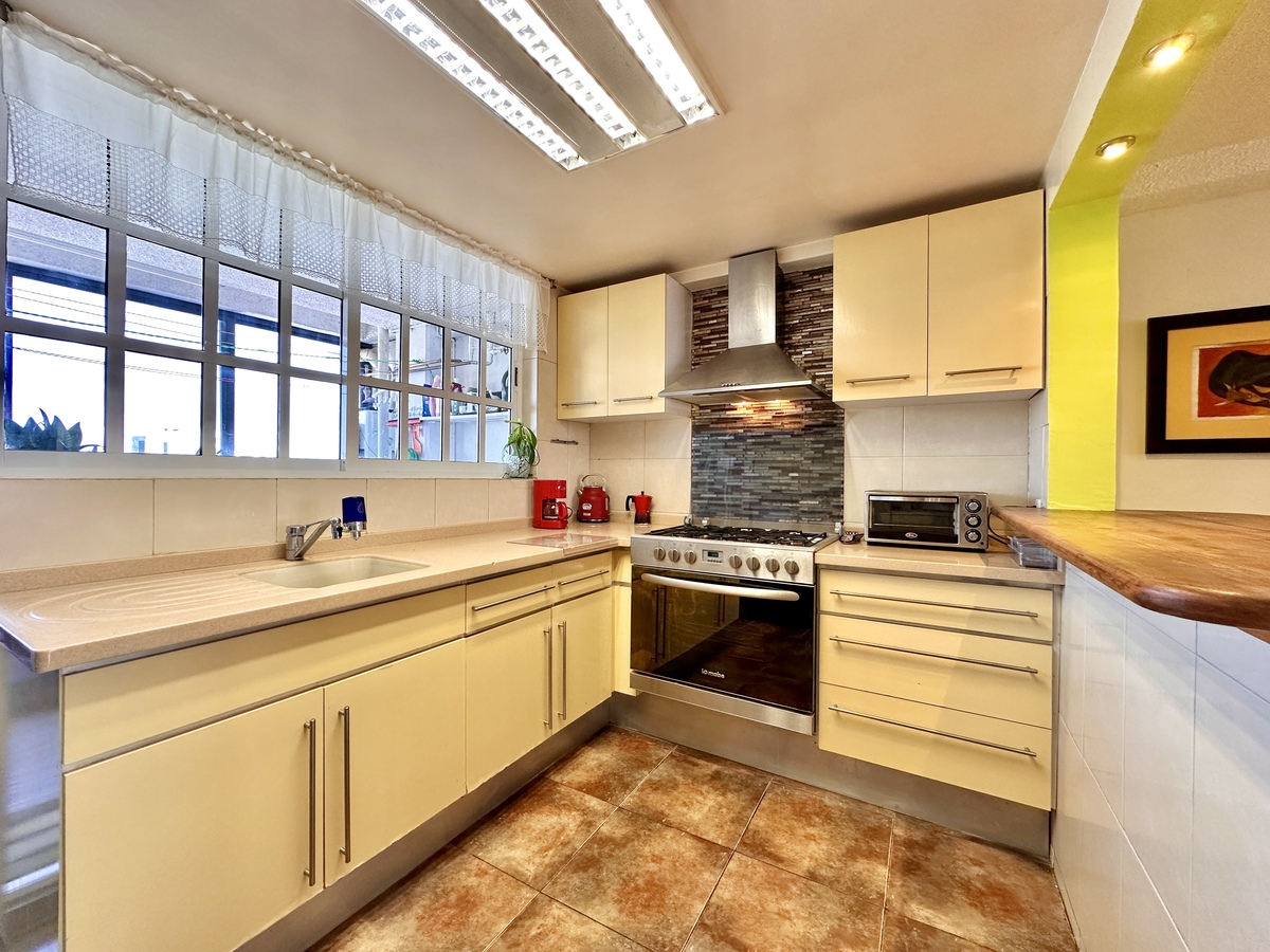 La propiedad cuenta con una excelente distribución: sala y comedor amplios e iluminados, cocina independiente, área de lavado techada y cuarto de servicio con baño. Dispone de 3 recámaras de gran tamaño, 2 baños completos y 1 cajón de estacionamiento. Su orientación y altura lo hacen un hogar cálido y acogedor, ideal para quienes valoran tanto el confort como la amplitud.