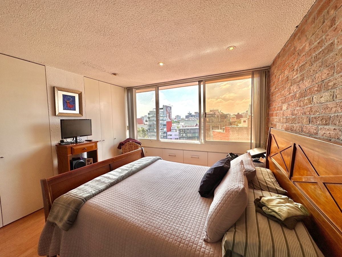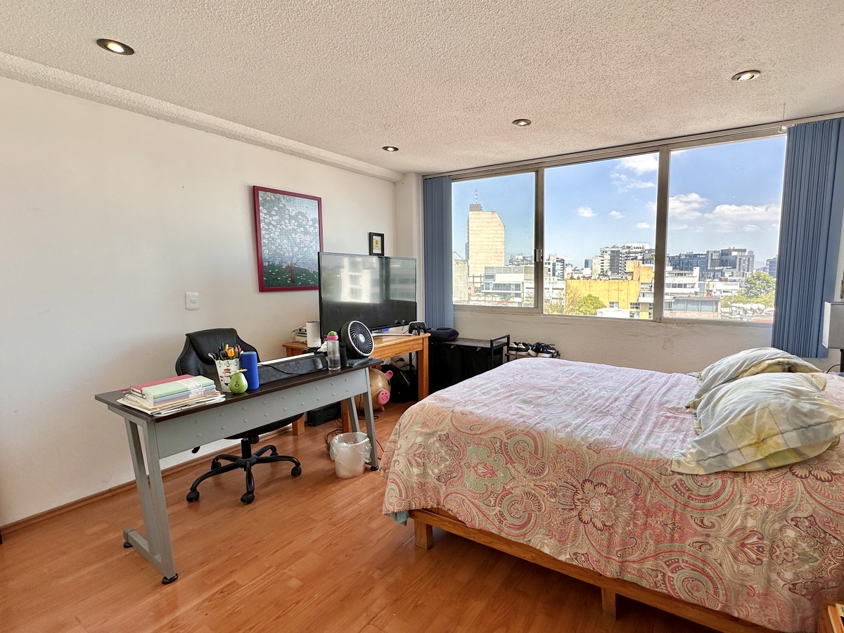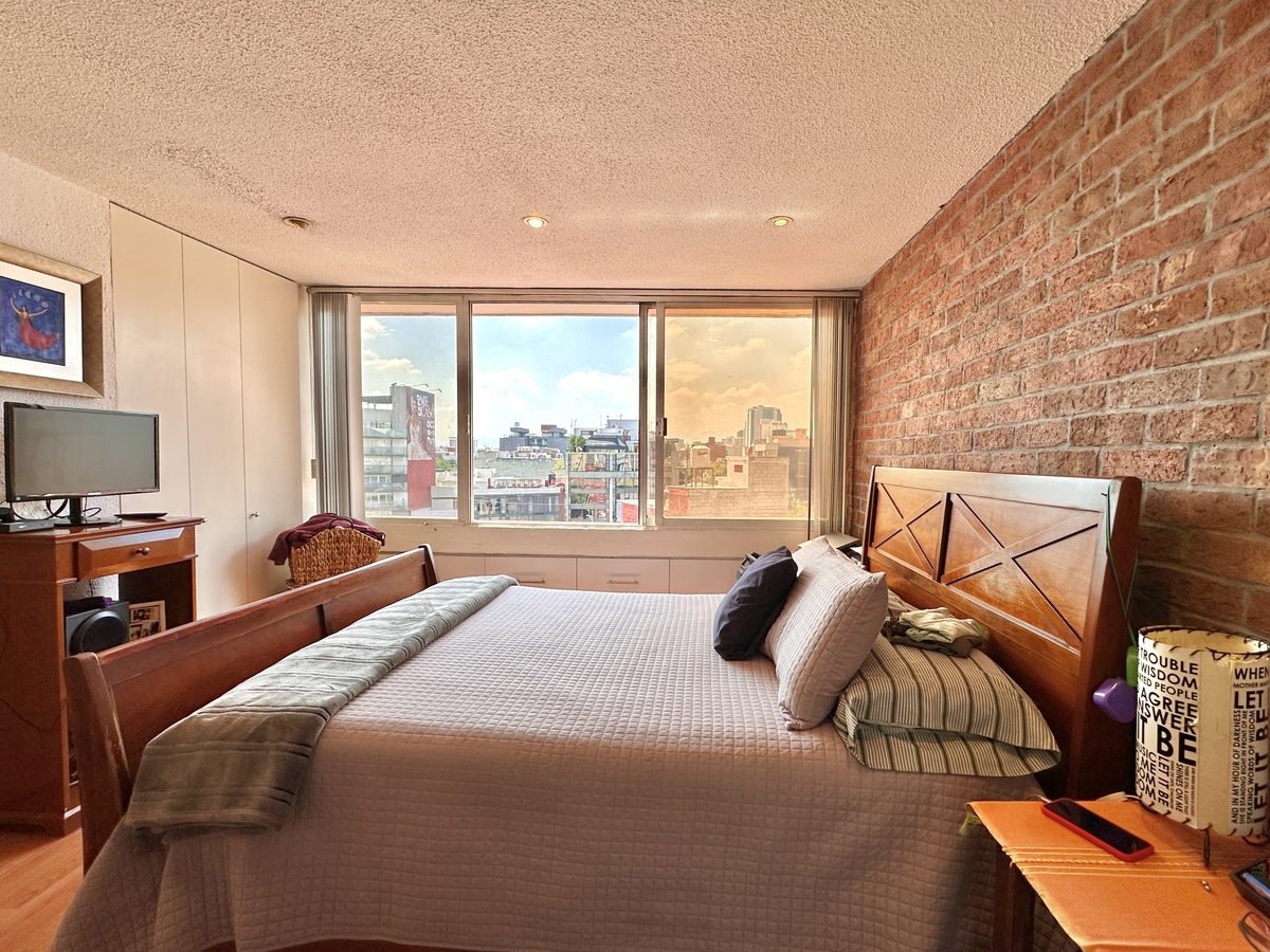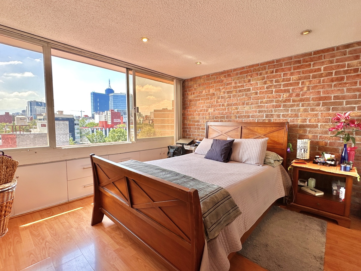 Discover this spacious and sunny 156 m² apartment on a CLOSED street in the Roma Sur neighborhood, one of the most dynamic and central areas of Mexico City. Located on the 7th floor of an exclusive building with only 10 apartments (one per floor), it offers privacy, tranquility, and an unobstructed view that fills the spaces with natural light throughout the day.