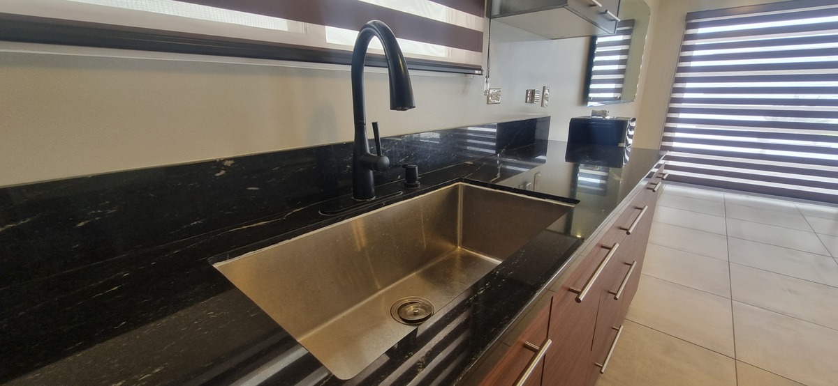 Cocina integral con cubierta de granito.