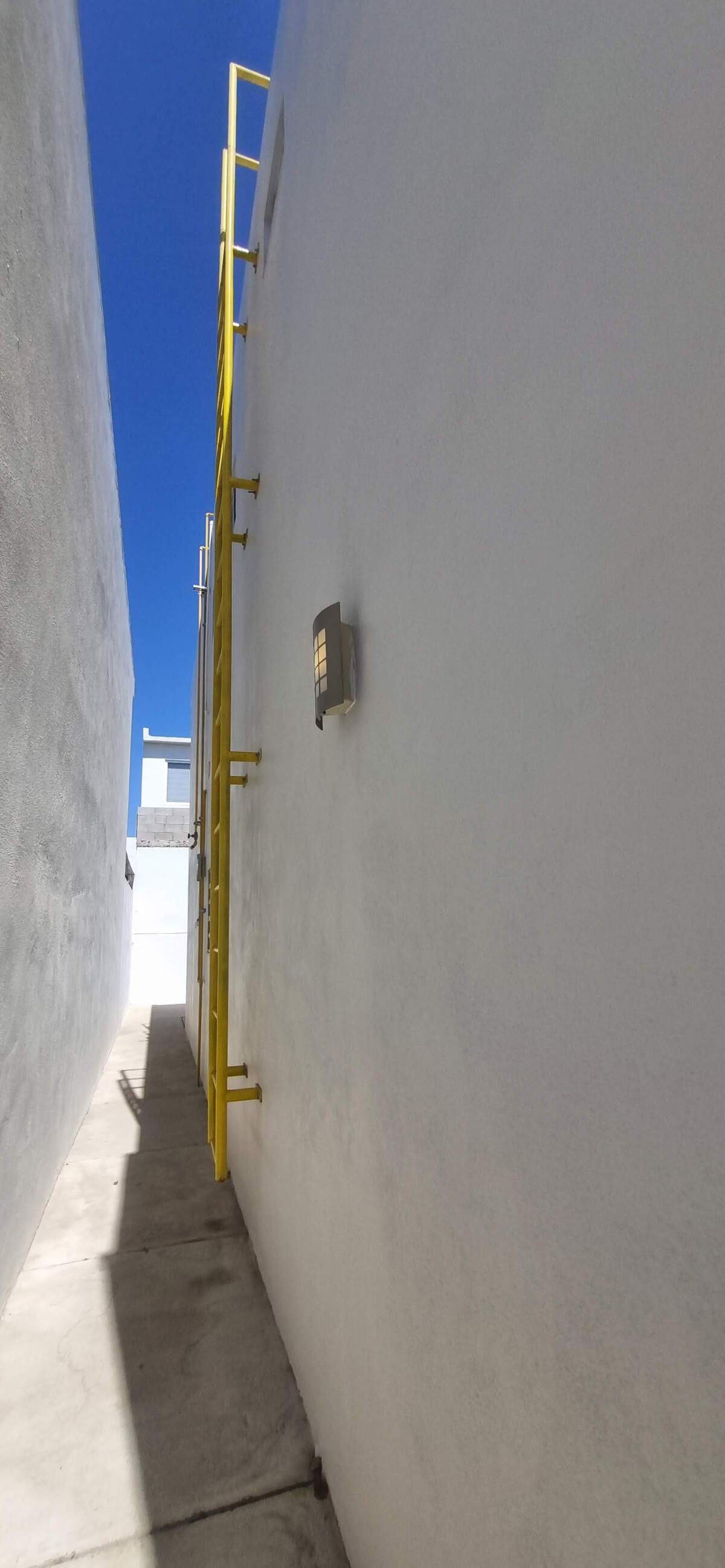 Escalera lateral de acceso al techo, ideal para mantenimiento o ampliaciones.