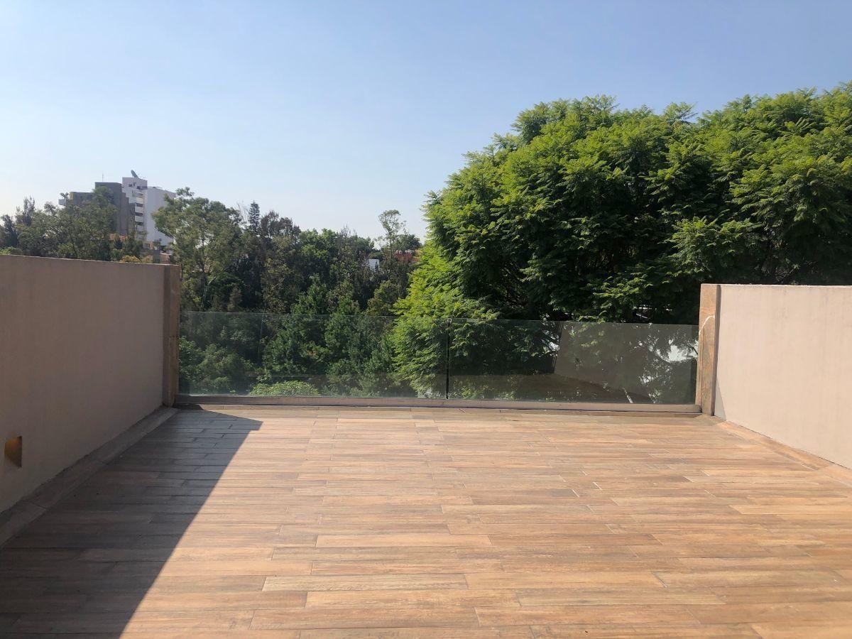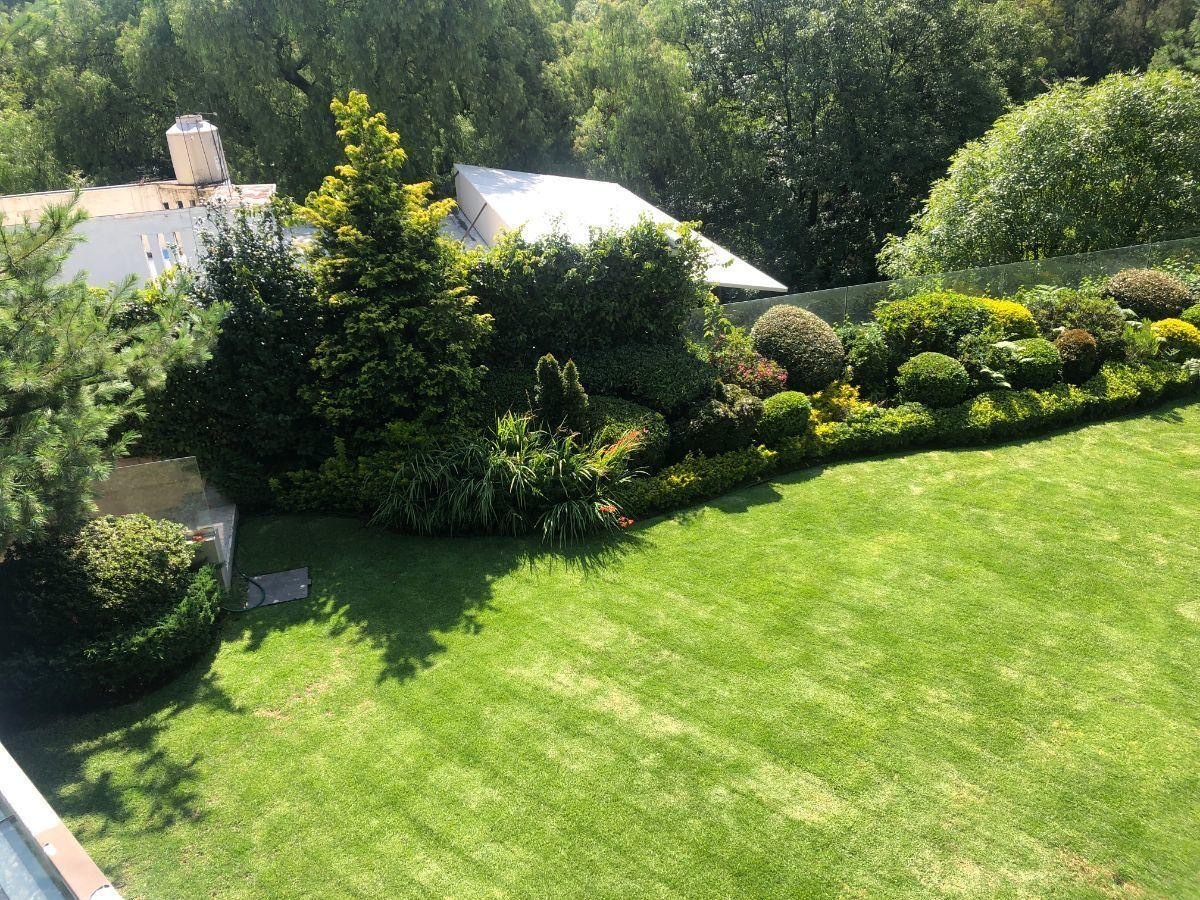 Terraza grande con vista al jardín y áreas verdes