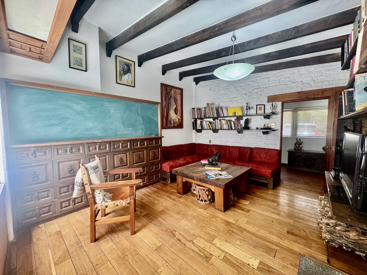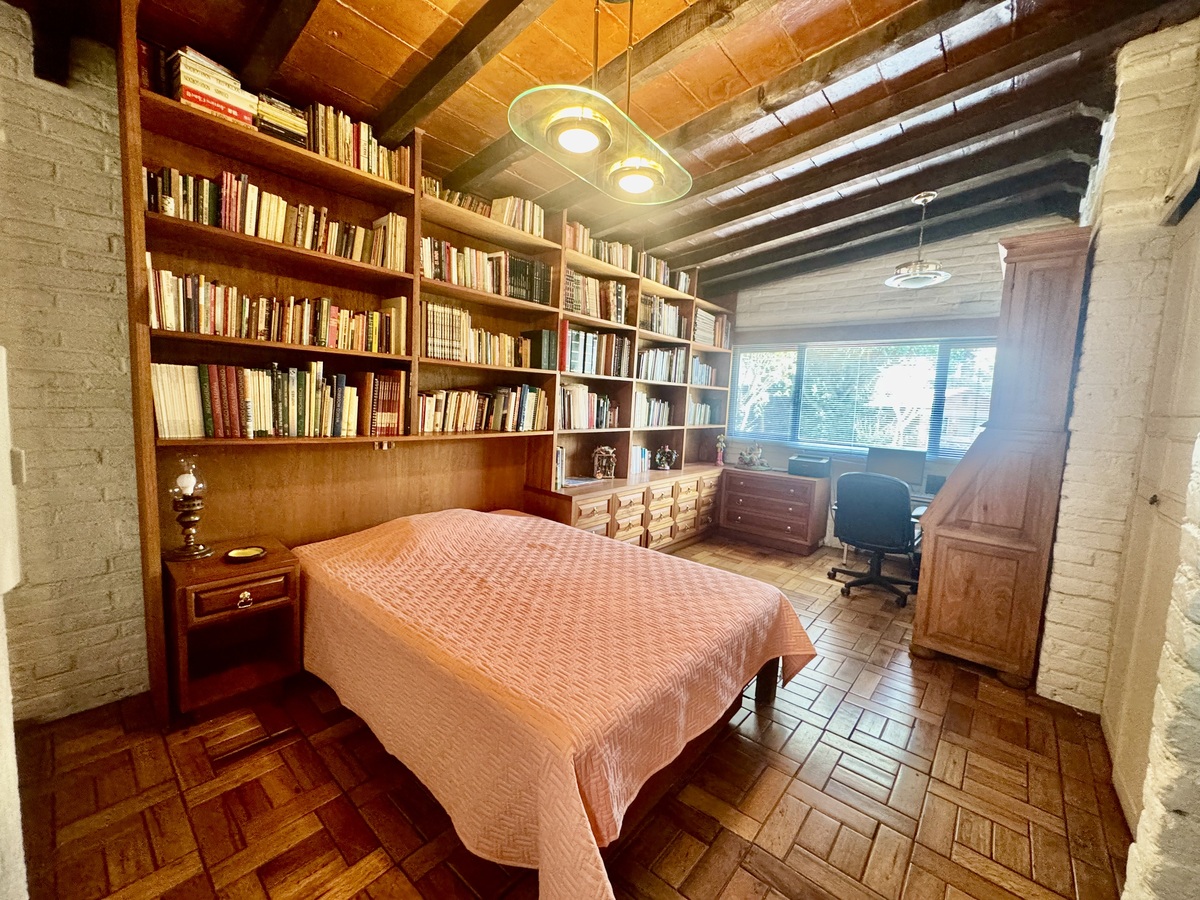 It has a large and bright living-dining room with access to the spectacular garden that has plants and palm trees, a terrace with a grill, and a lovely fountain. Closed kitchen and breakfast area. It has a service room and service bathroom and a half bathroom for drivers with a security booth. Ideal for updating and customizing to your taste. Residential land use for 2 houses.Quieres vivir en una preciosa casa estilo colonial mexicano de un solo piso con un jardín espectacular. Aquí está esta casa que consta de 3 amplías recamaras, 3 baños completos y medio de vistas , área de televisión y despacho con salida a las terrazas.