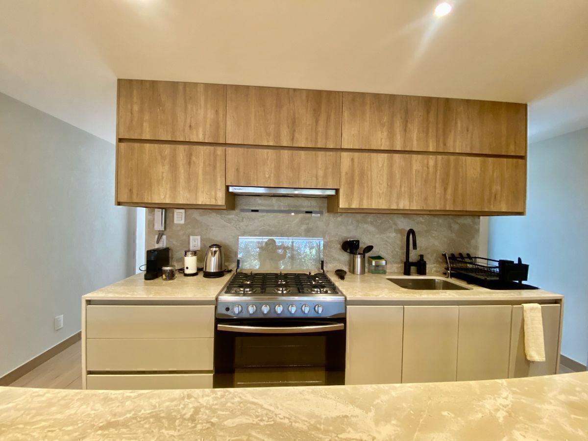 La cocina abierta, equipada con lo último en electrodomésticos, te permitirá desatar tu creatividad culinaria mientras disfrutas de la luminosidad y vistas espectaculares.
