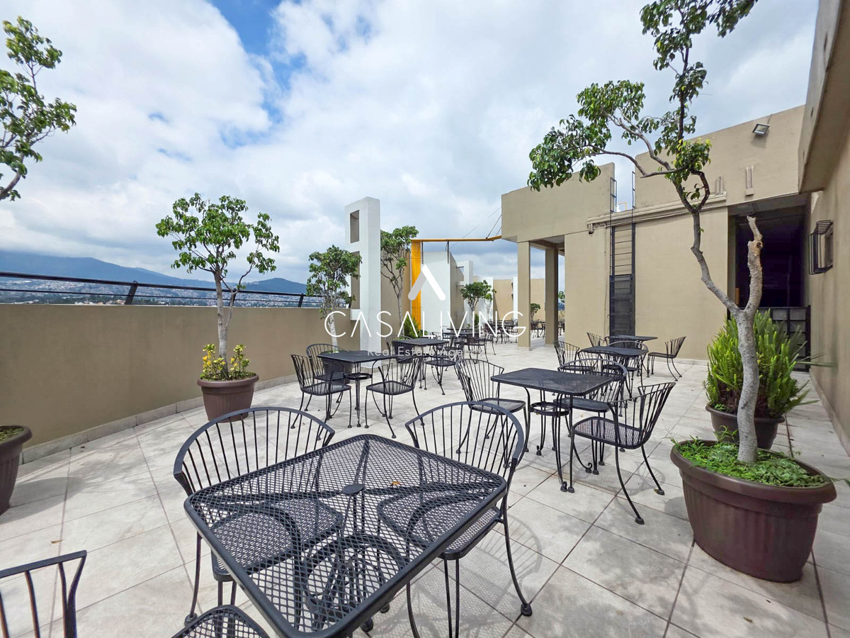 Un salón social con balcón, que da paso a la joya de la corona: un espectacular roof garden privado. Cuenta con jacuzzi para relajarse, una terraza perfecta para reuniones, una cocina exterior y un baño completo para la comodidad de sus invitados.