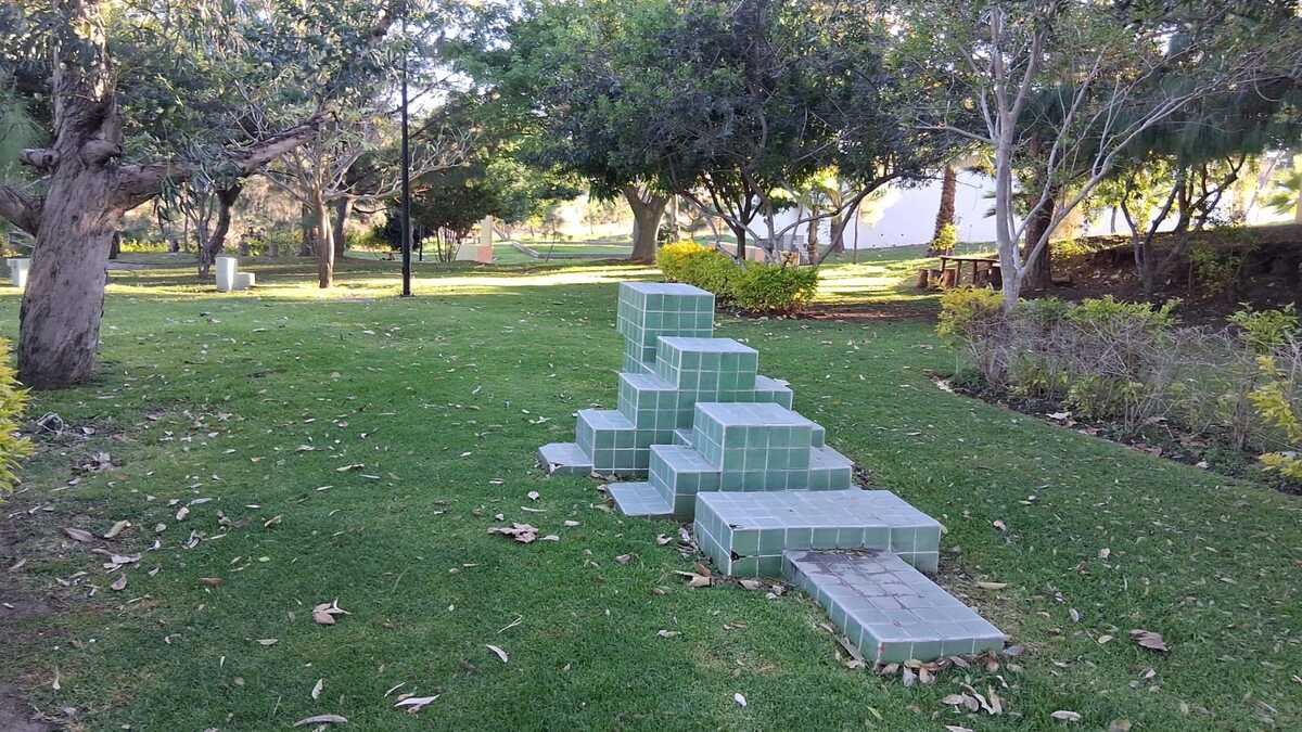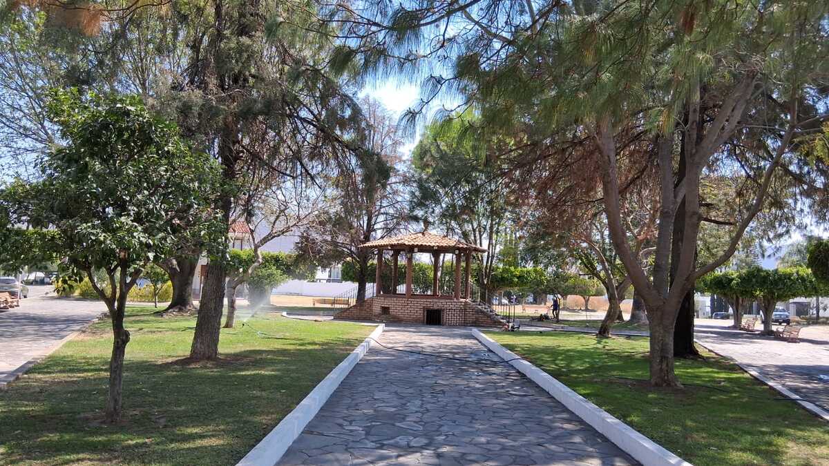 A unos pasos del kiosco y cerca de las áreas recreativas.