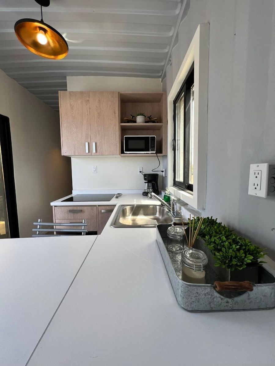 Completely new container conditioned as a cabin on a plot of 843.79 square meters located in Rancho los Encinillos in La Rumorosa, Baja California. It has two bedrooms and also includes a small cabin for guests.