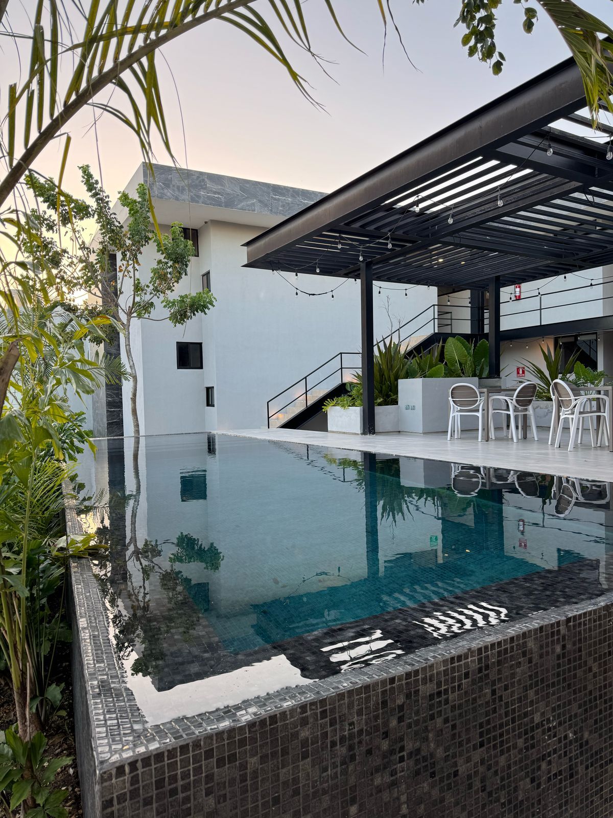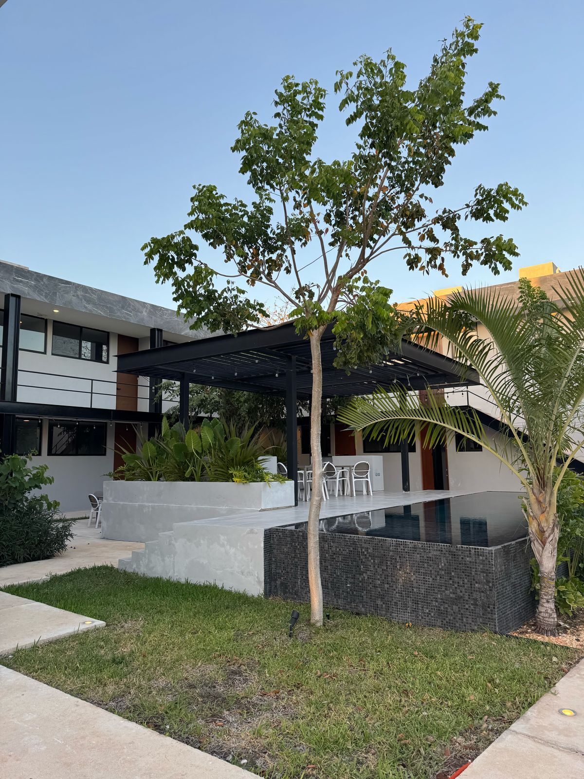 Cuenta con áreas comunes como: área de lecturas, area de yoga,asadores techados, áreas de contemplación y descanso, áreas de juegos para niños, terraza al aire libre de usos varios, piscina.