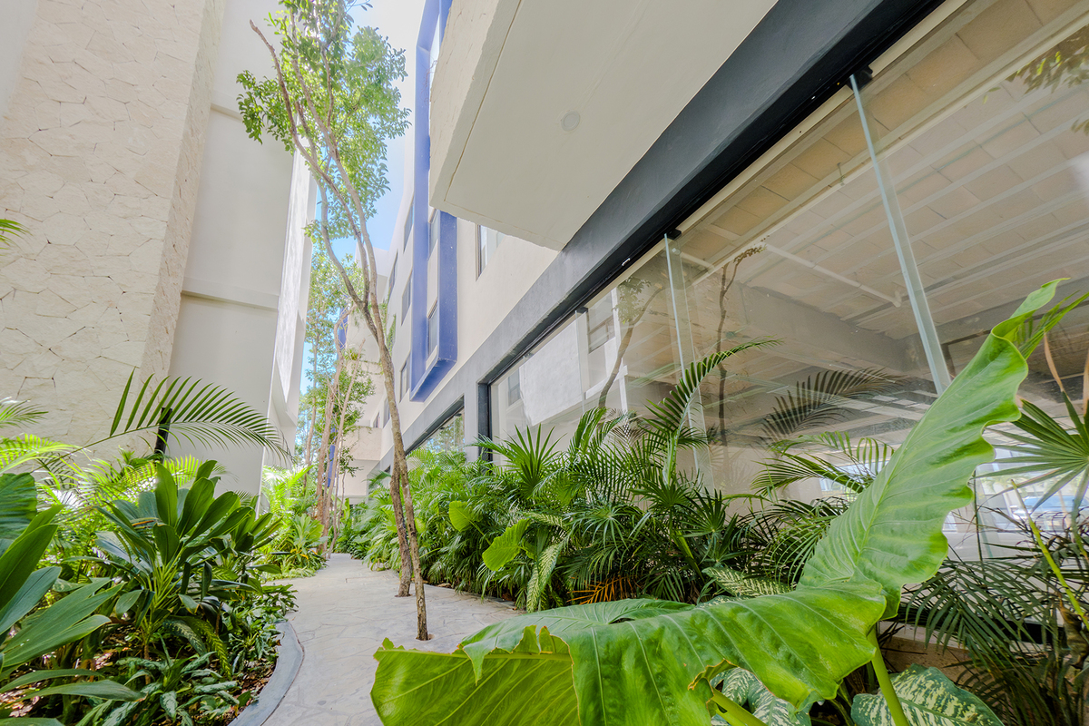 Its private terrace with jacuzzi offers incredible green views, allowing you to feel in the middle of the jungle from a second floor while observing the walkways and common areas filled with vegetation, creating a total sense of connection with nature.
