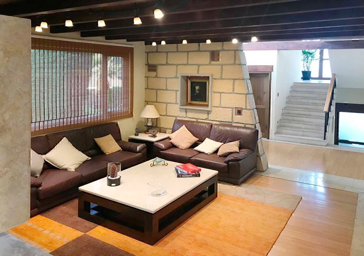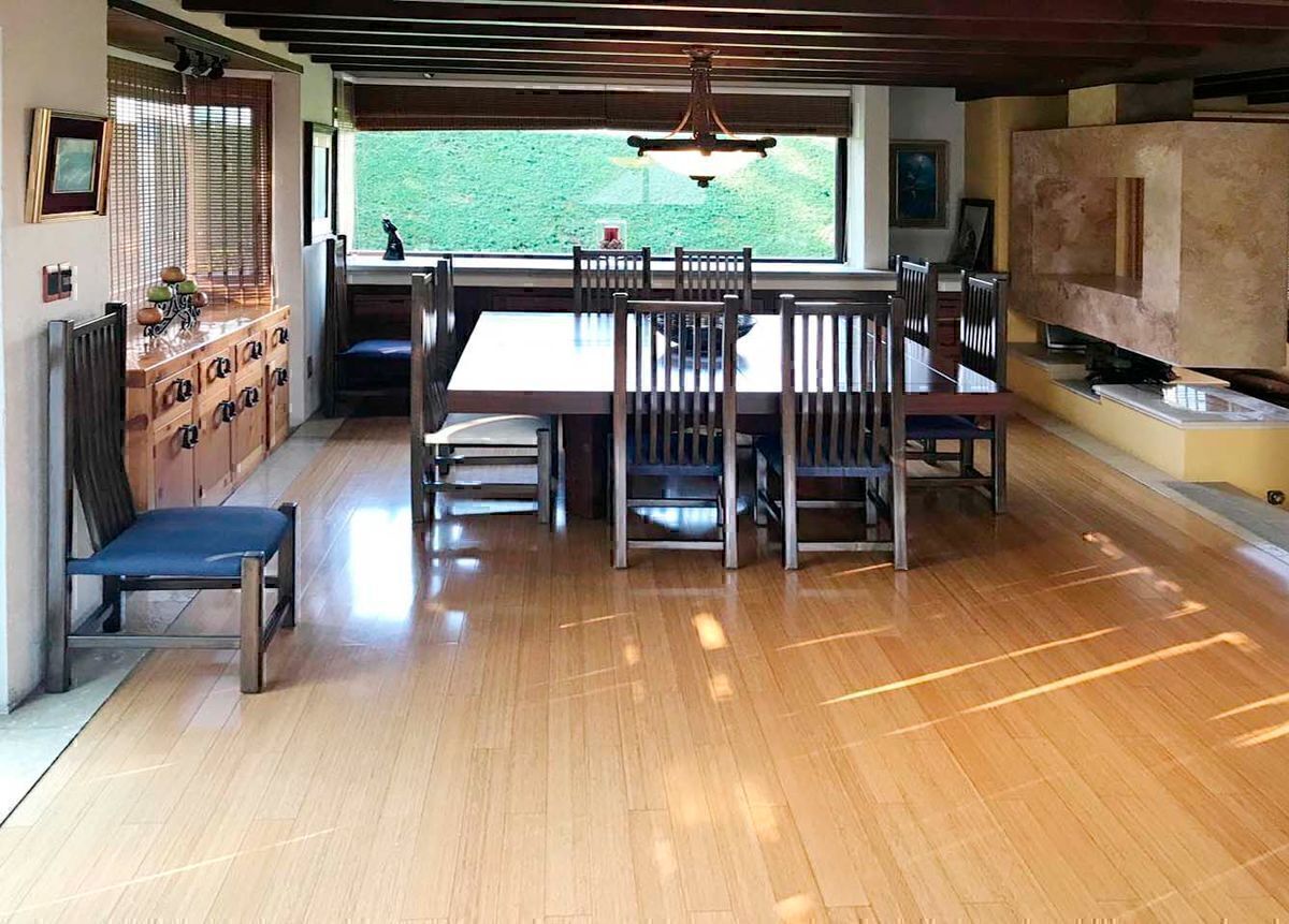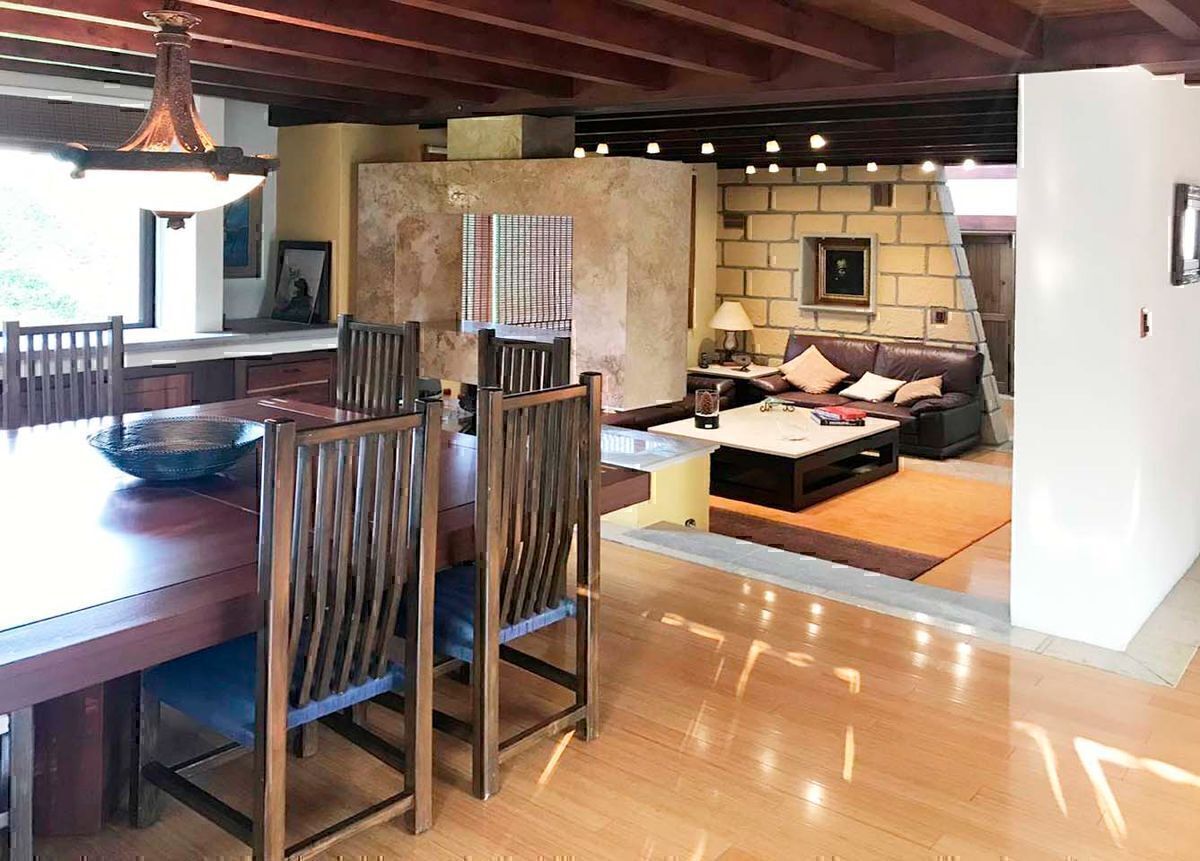 Finos acabados en mármol, pisos de bambú, cancelería alemana, techos con vigas de madera.