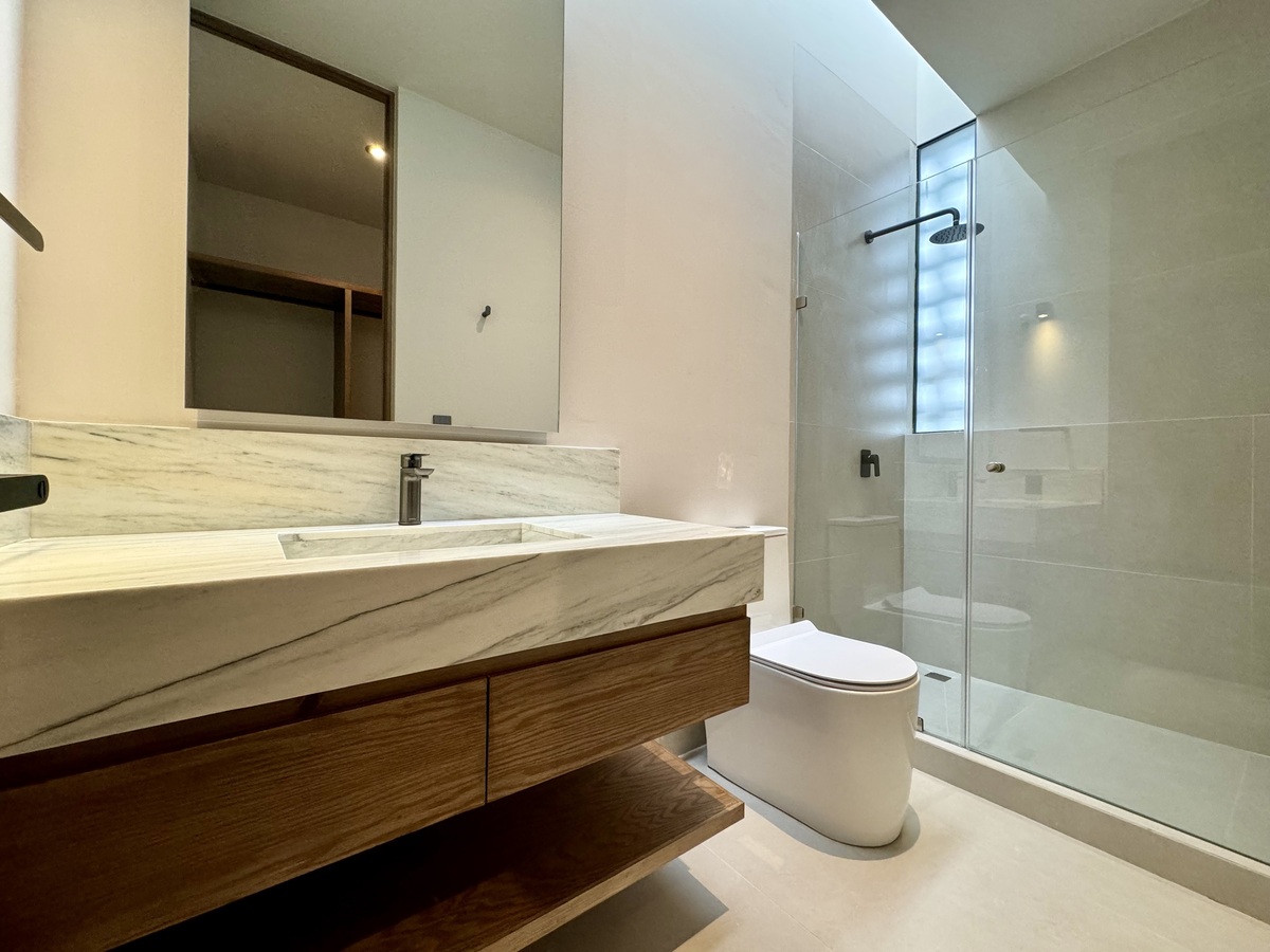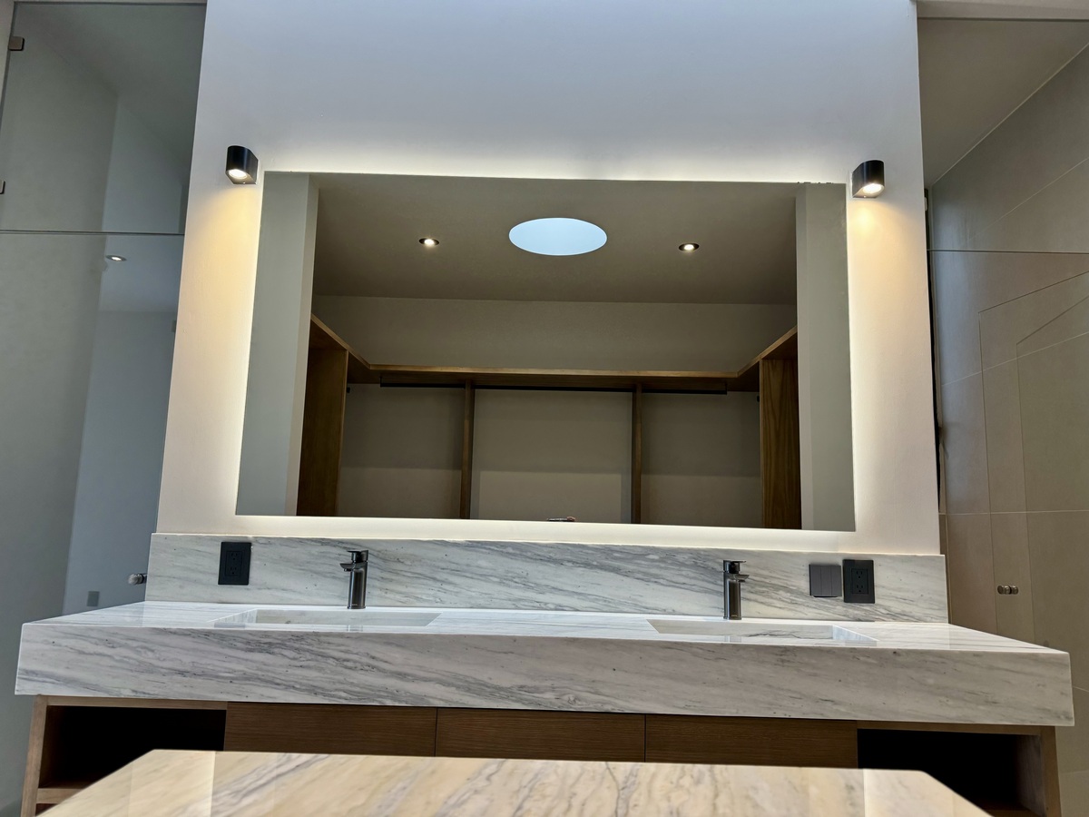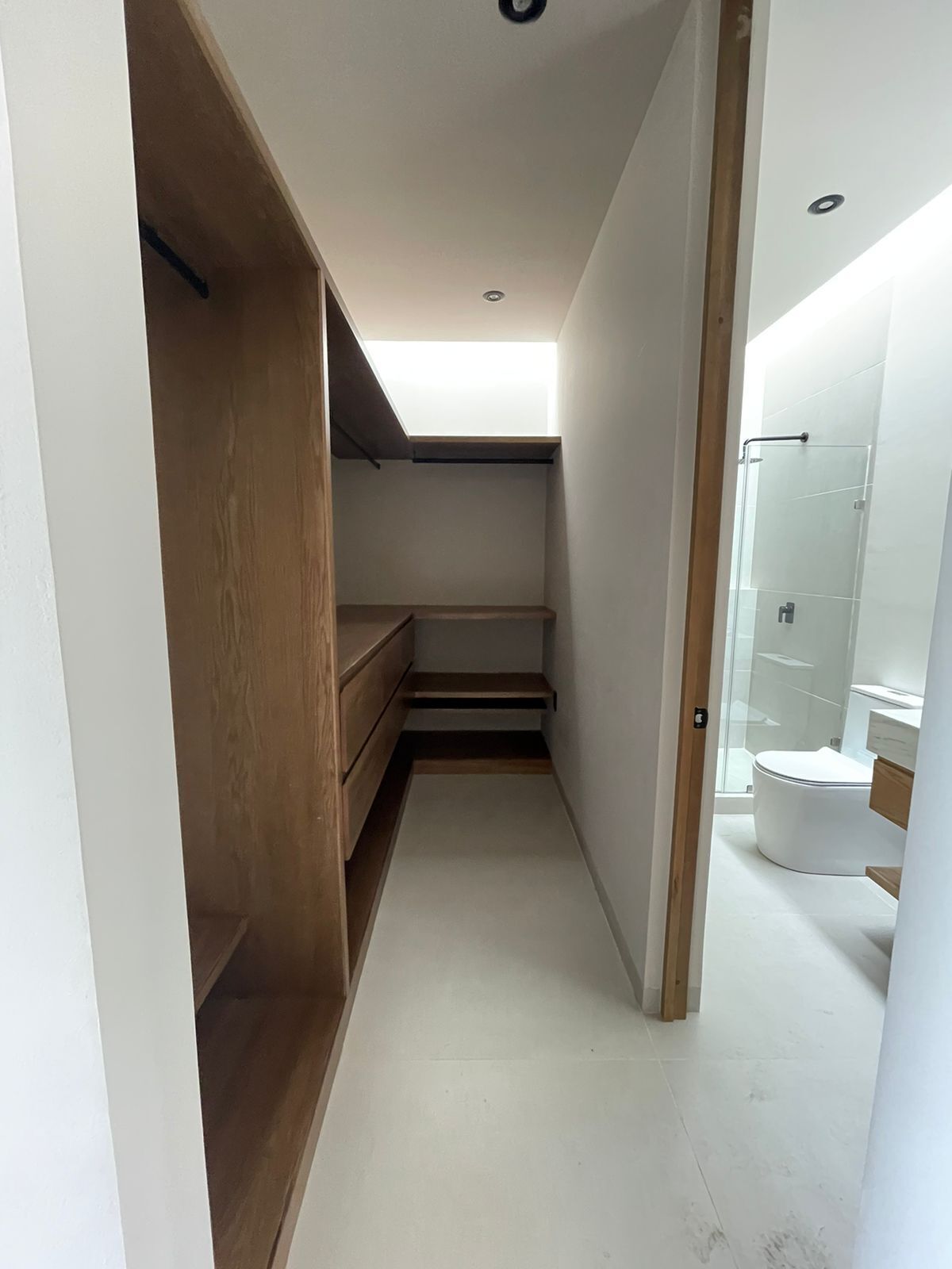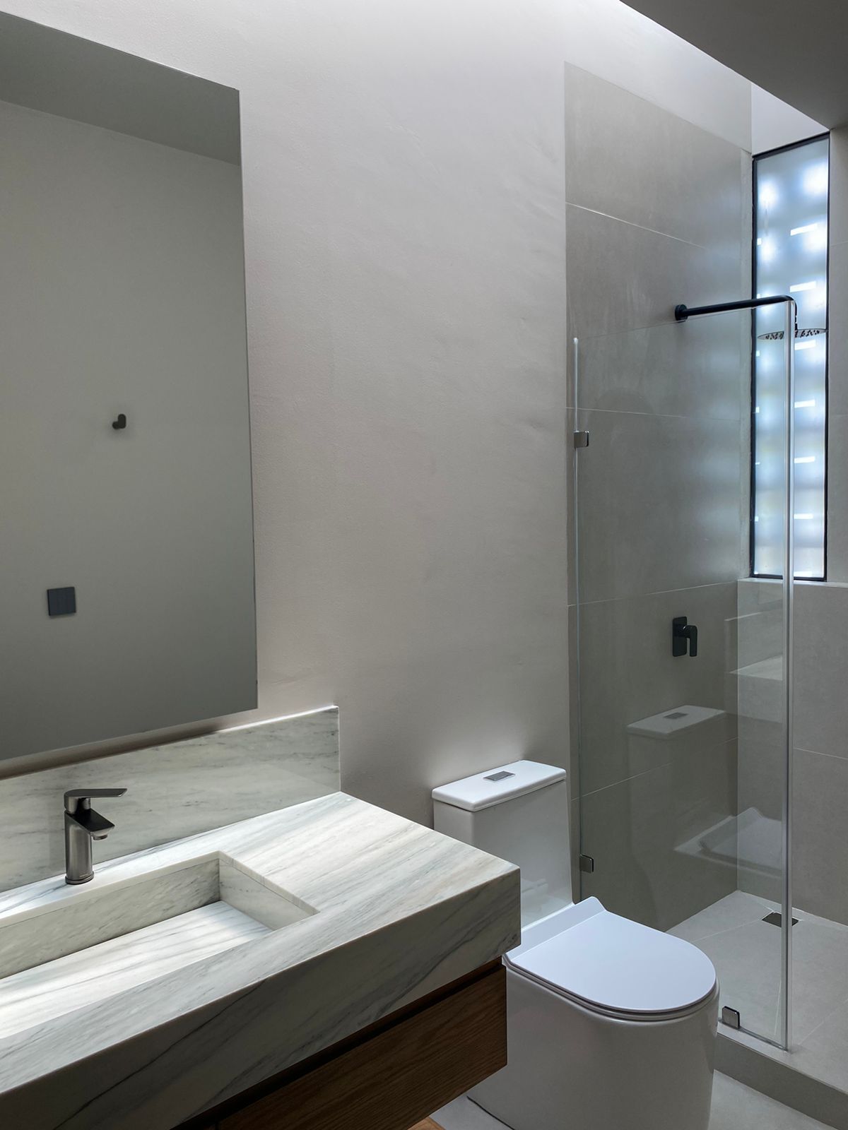 - Puertas de piso a techo, muebles de baño, vestidores: Madera de encino