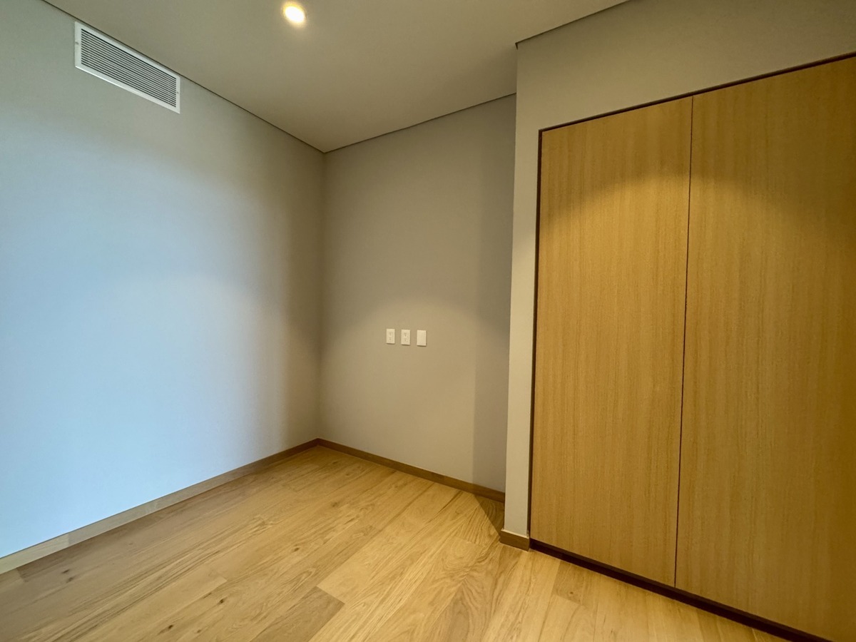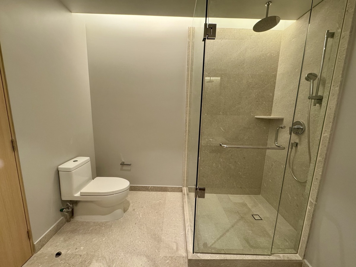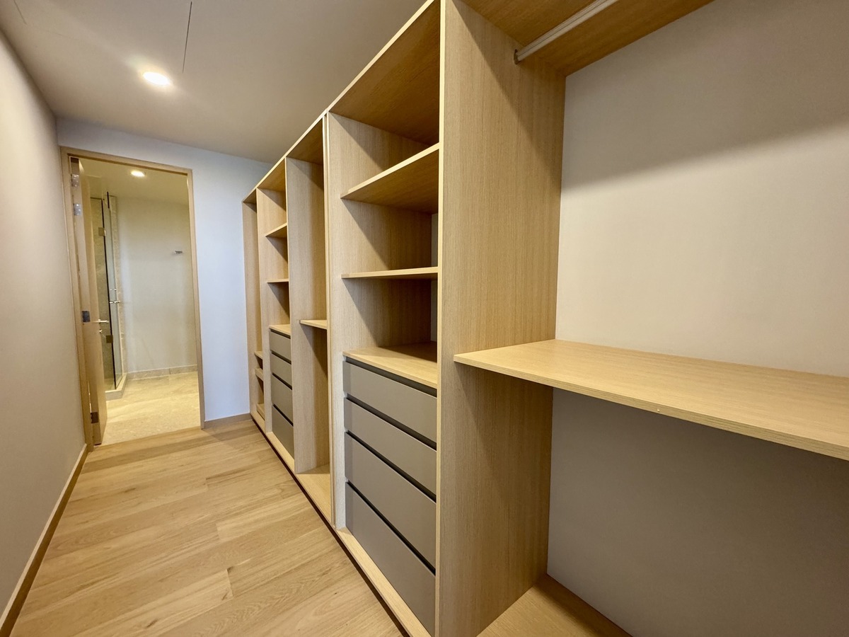 2 recámaras, ambas con baño privado; la principal incluye vestidor. Medio baño de visitas. Sala y comedor con ventanales de piso a techo y acceso al balcón. Espacio ideal para TV o home office. Cocina equipada con electrodomésticos de alta gama. Cuarto de lavado con baño de servicio. Aire acondicionado central y persianas tipo blackout ya instaladas. 2 estacionamientos techados + bodega privada.