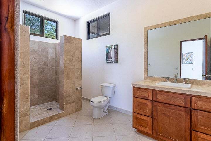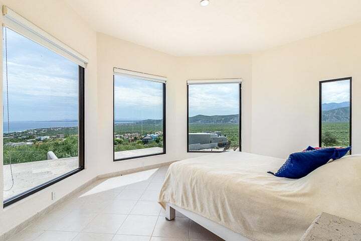 Los dormitorios están cuidadosamente diseñados como verdaderos refugios. La habitación principal es un oasis de tranquilidad, con ventanales amplios que permiten despertar con vistas impresionantes al mar. Los dormitorios para invitados son igualmente confortables, cada uno con vistas únicas y un ambiente relajante. Uno de ellos cuenta con una acogedora cama individual, mientras que otro ofrece vistas cautivadoras de las colinas y el mar. Los baños presentan acabados modernos, con ducha tipo walk-in y lavabos dobles.