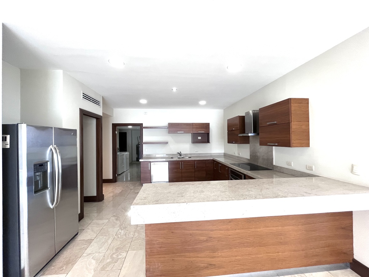 estacionamiento, vestíbulo, medio baño de visitas, sala, comedor con balcón, vistas a la sierra madre y cerro de la silla, cocina con equipada con electrodomésticos, barra desayunadora, 3 recámaras, c/u con vestidor y baño, aire central, lavandería con lavadora y secadora, cuarto de servicio con baño , 2 cajones de