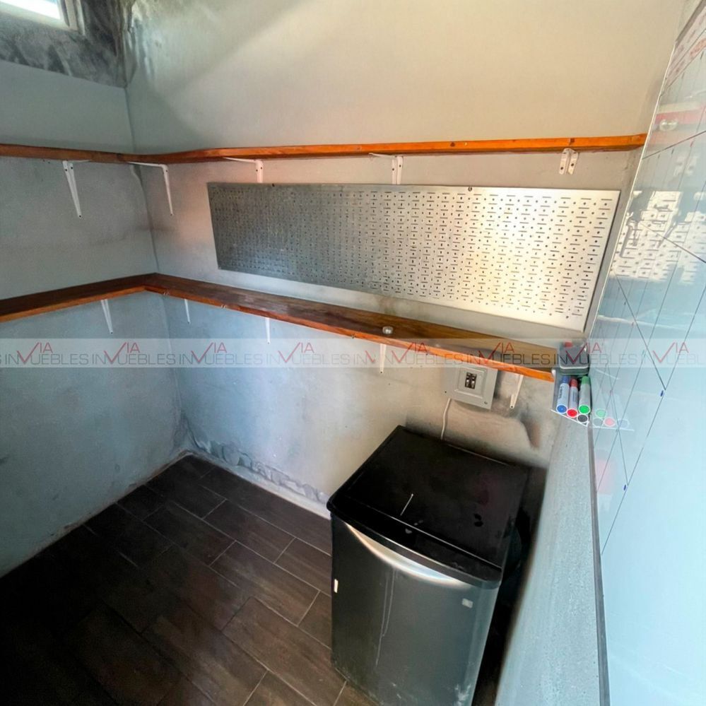 Terreno techado de 437 m², 44 metros de frente a carretera nacional, fondo de 12 metros, altura de 7 metros, cortinas eléctricas, cuarto de herramienta, mini oficina, 1 baño completo con regadera, luz 110 y 220 volts, portón eléctrico para acceso de vehículos