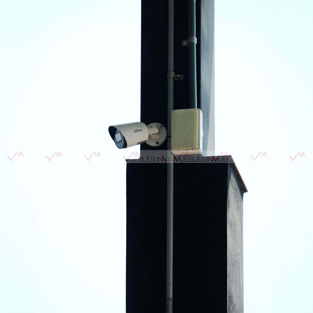 Incluye en la renta: sistema de circuito cerrado con 8 cámaras de vigilancia, lámparas industriales, foto celdas para automatización de iluminación exterior, cortinas eléctricas