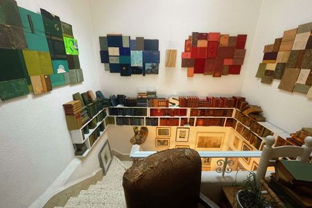 Recámara- estudio con puerta corrediza de vidrio templado al exterior, cerradura de seguridad en acero inoxidable diseñada y fabricación única.