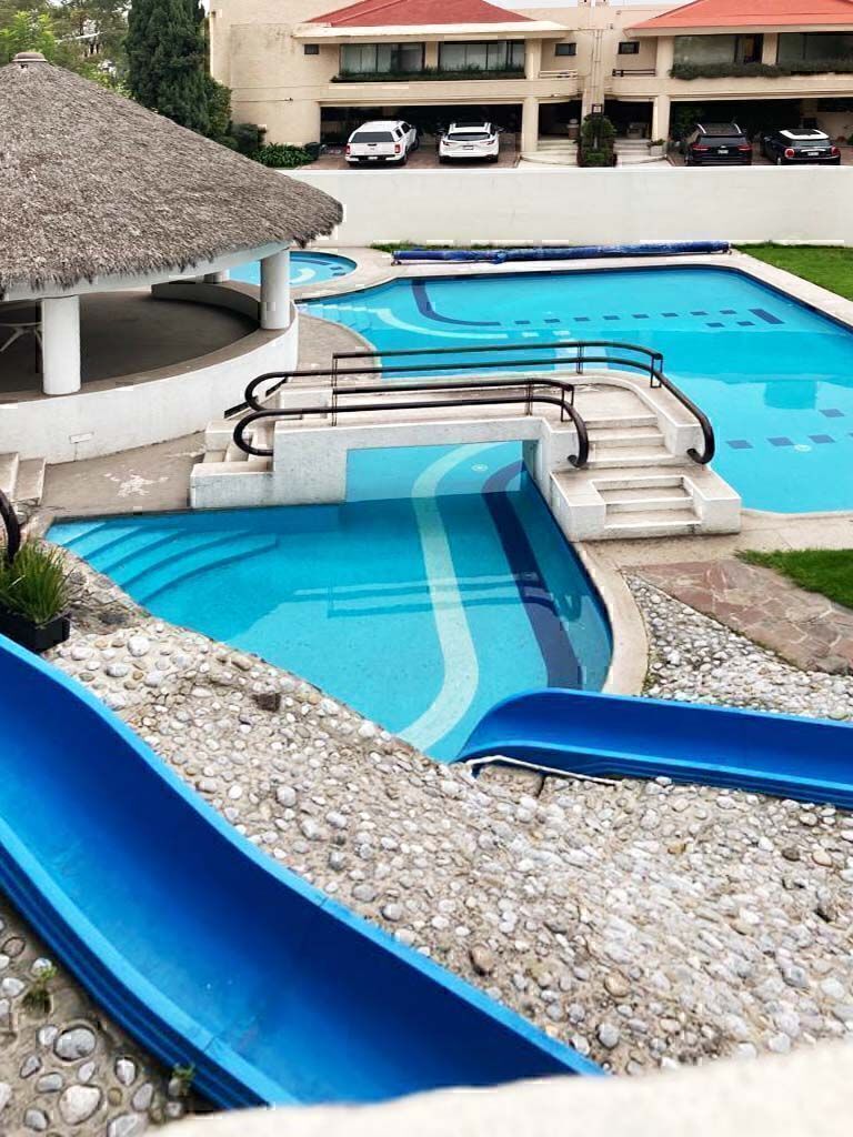 El conjunto cuenta con jardín común, salón de fiestas para 80 personas con sus baños, y una linda alberca con chapoteadero, jacuzzi y tobogán.