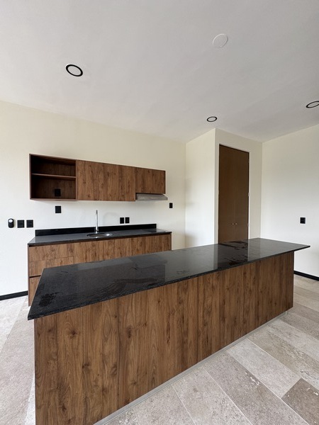 *Mesetas de granito en cocina y barra desayunadora, pisos de marmol, yeso en muros, muros divisiorios de block.