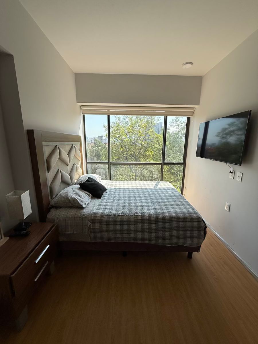 Edificio moderno, el departamento tiene entrada de luz natural, estacionamiento y vigilancia 24 horas.