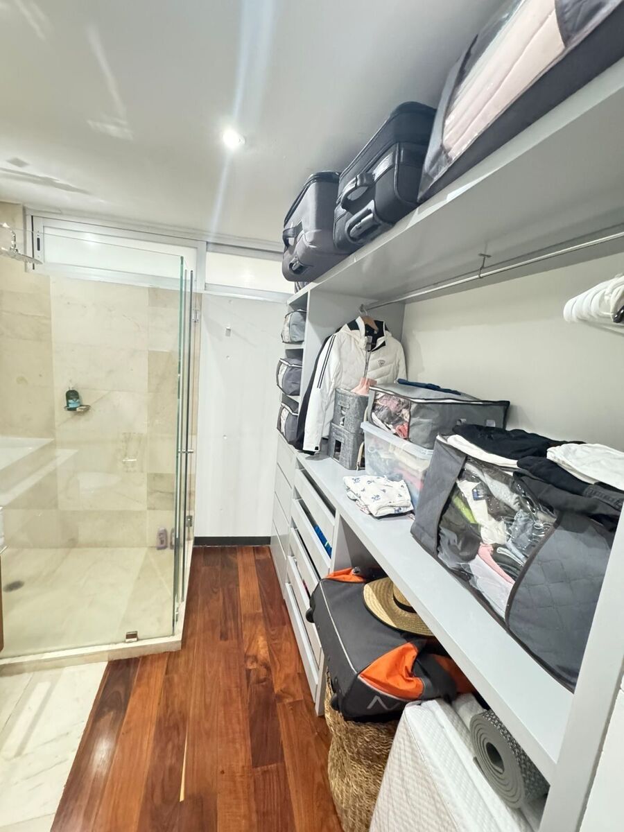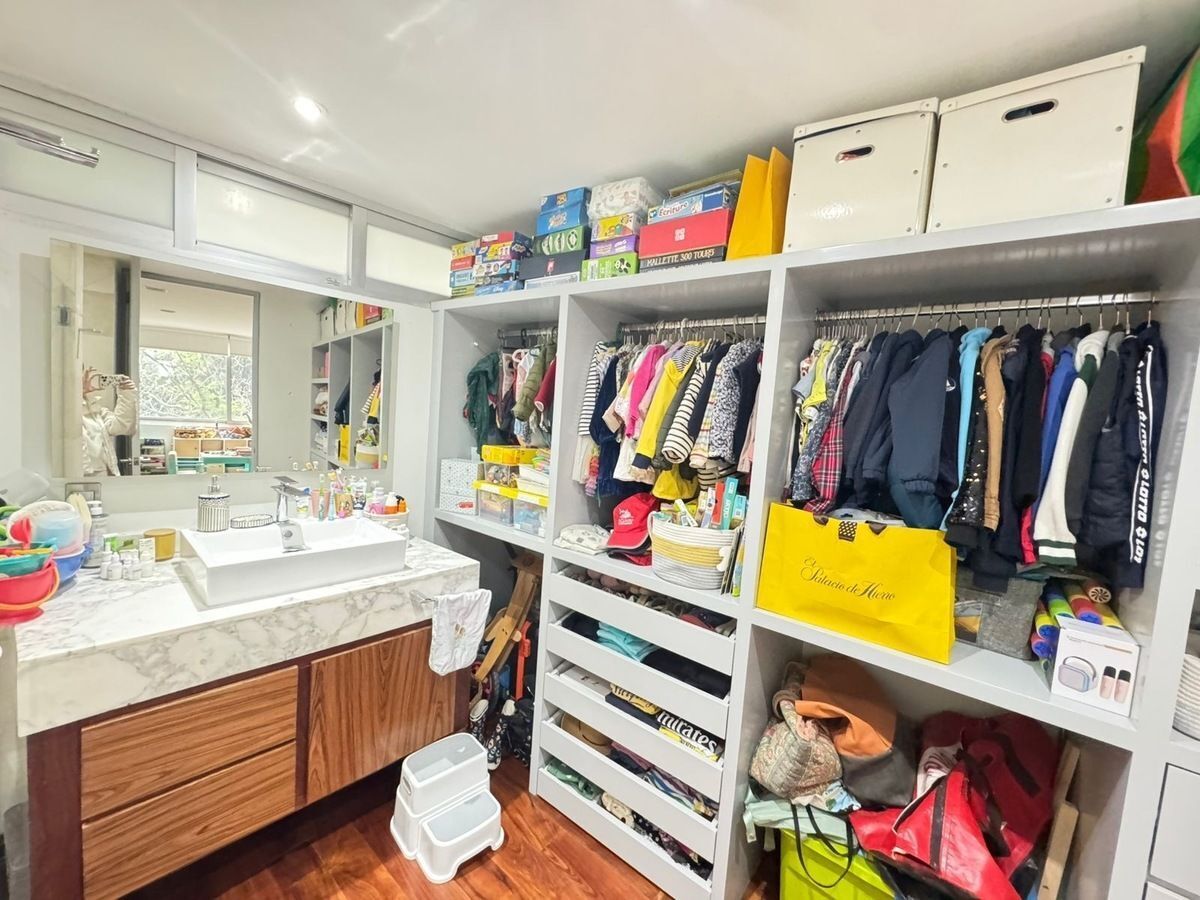 La carpintería de los closets y muebles empotrados de baño es madera y las cubiertas mármol