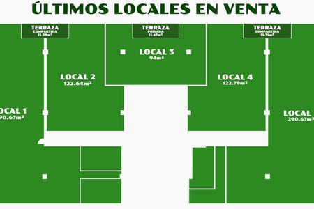 Estos locales se encuentran en un novedoso concepto arquitectónico de departamentos de alta gama que busca crear espacios de convivencia bajo el principio de "Un Vecindario