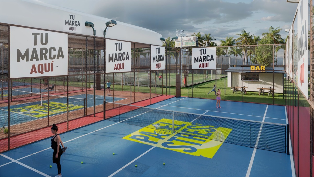 El club tiene canchas de padel, pickleball, futbol, estudios fitness, áreas sociales y zonas infantiles.