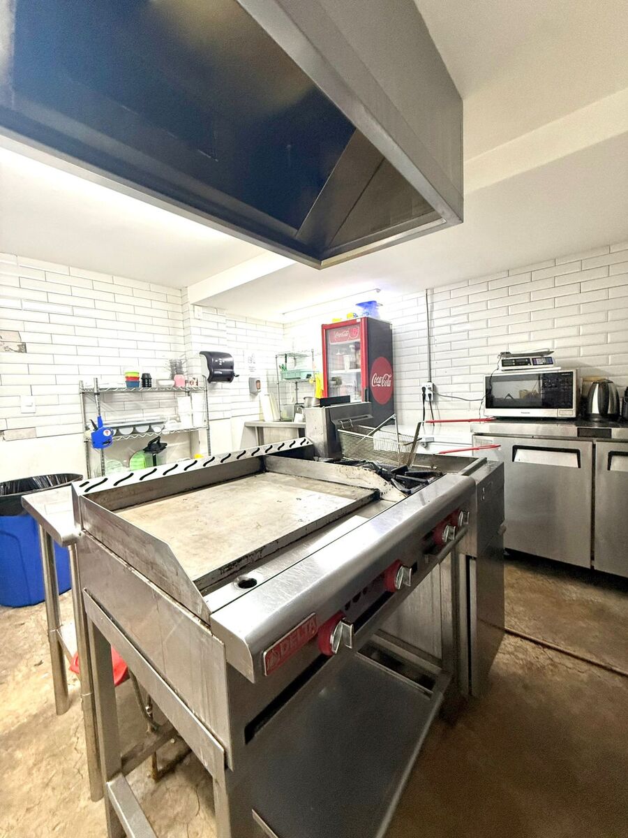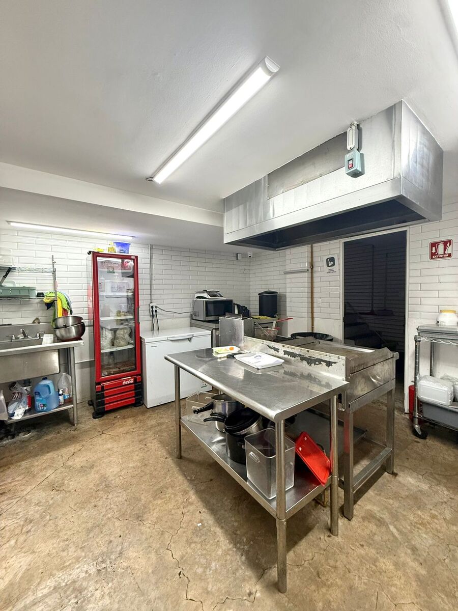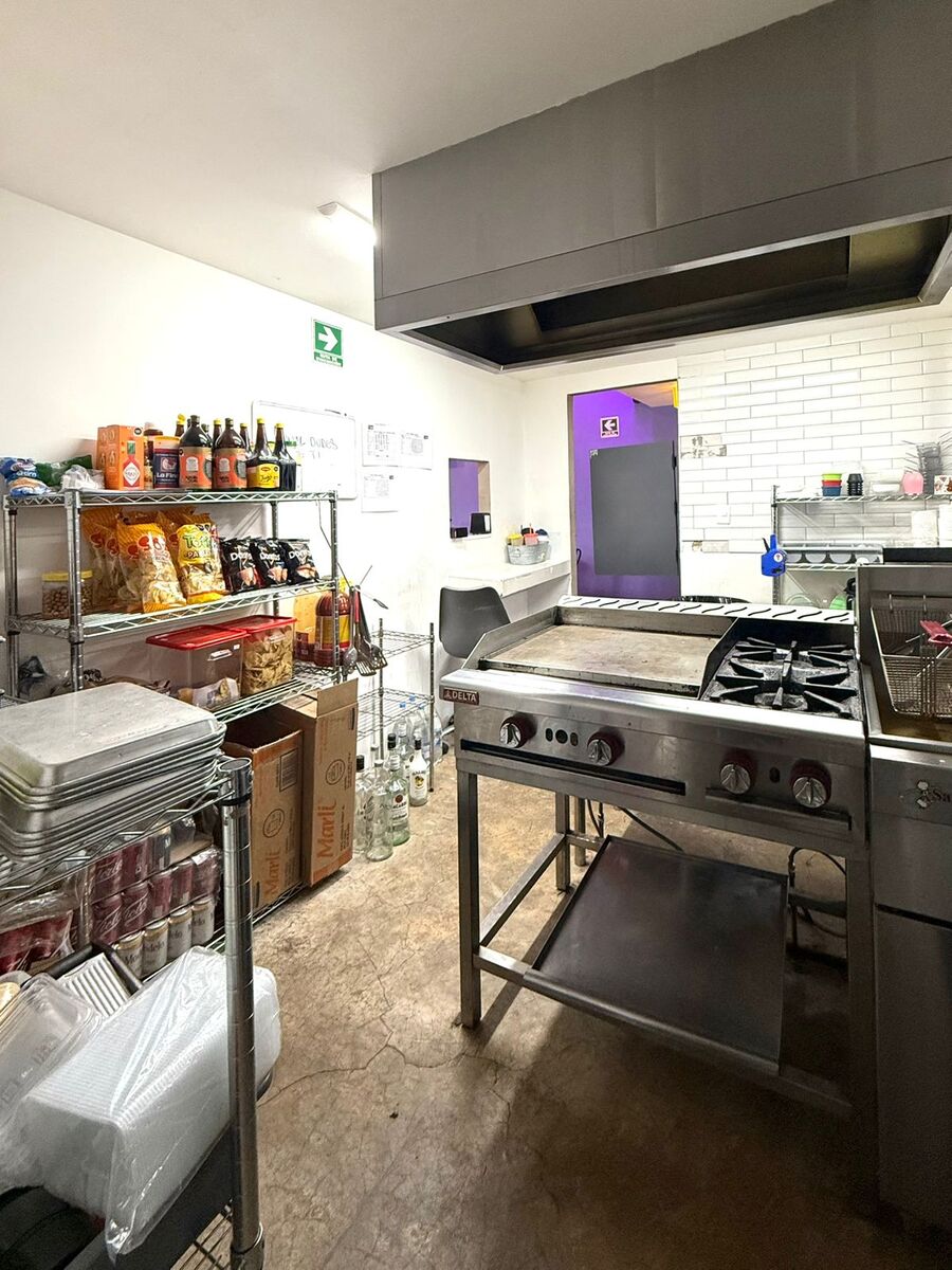 It has 2 access doors, an area for tables and a bar, a display area and cash register, at the back is the kitchen and a half bathroom, upstairs there is a loft that can function as a storage room or office.Construcción 87 m2