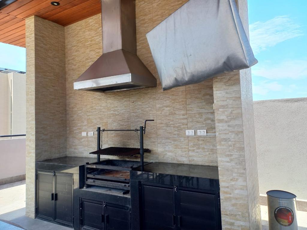 Cuenta con una terraza en el ultimo piso con asador, baño y barra con sillas , espectacular vista a la montaña.