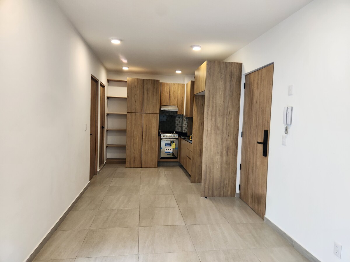 1 recámara, un baño completo, estancia sala comerdor, cocina integral, un lugar de estacionamiento, gym, bodega, roof garden y vigilancia las 24 horas.