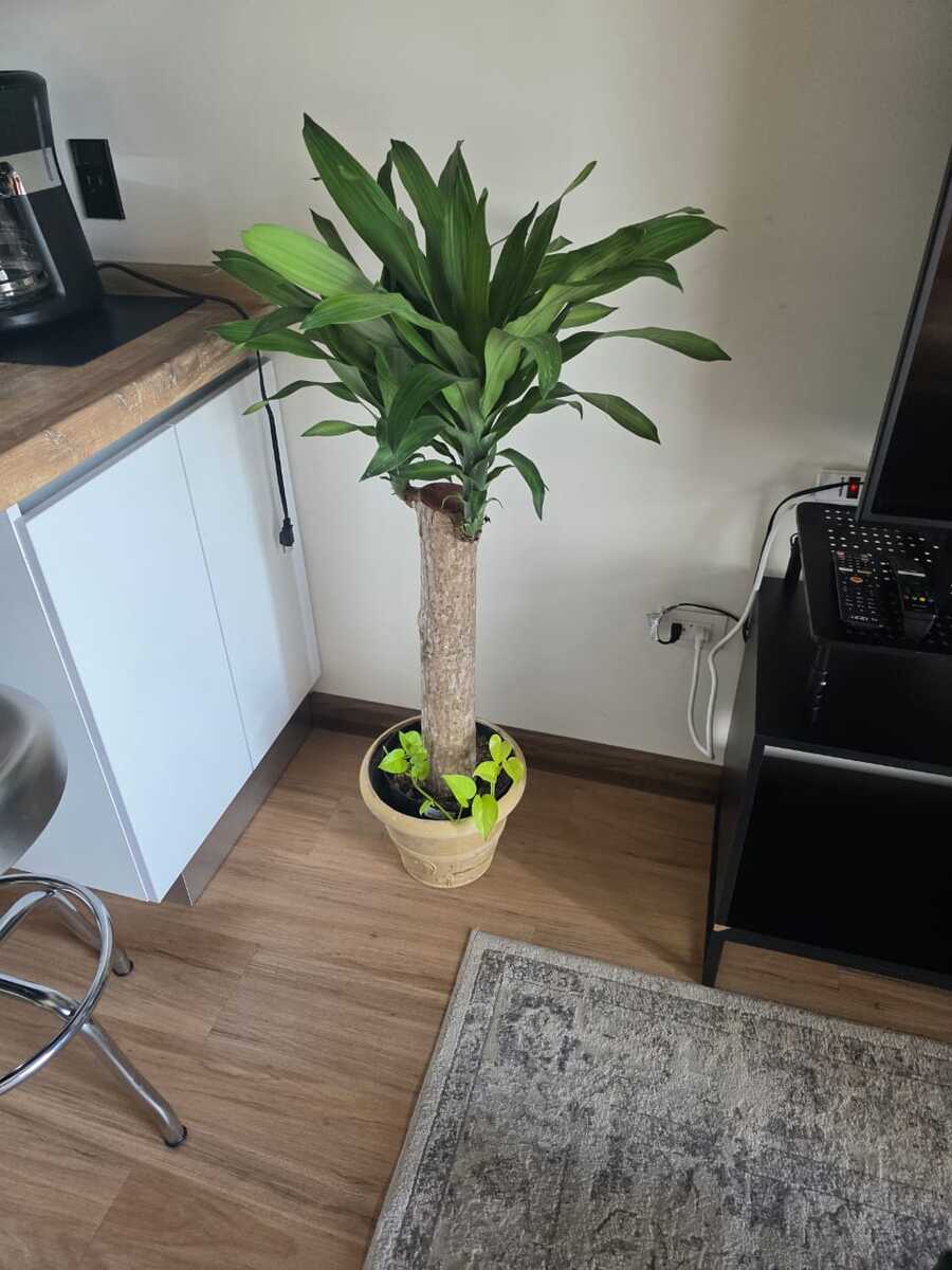 Decorative rug, floor lamp, and decorative plants