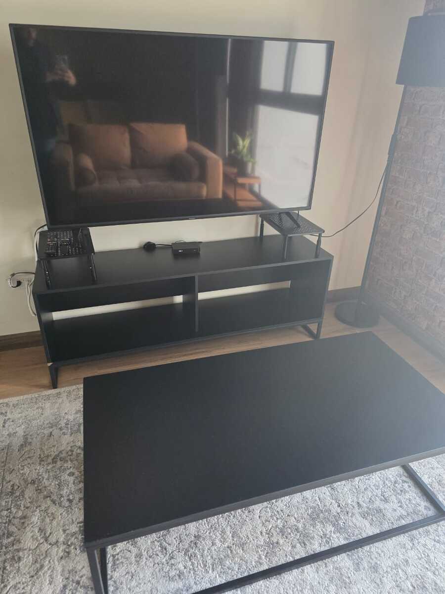 TV stand with 55” Sharp screen