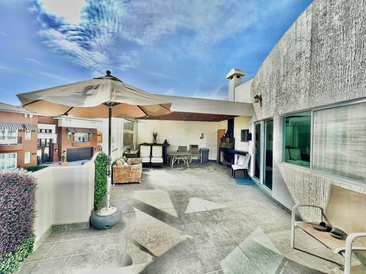 - Amplia terraza con chimenea, ideal para disfrutar las vistas y convivencias al aire libre