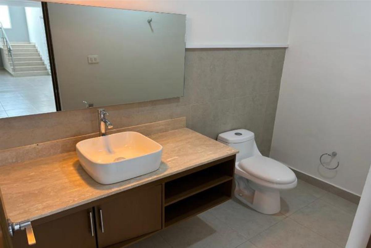 * MEDIO BAÑO PARA VISITAS CON ENCIMERA DE MARMOL E ILUMINACION LED.
