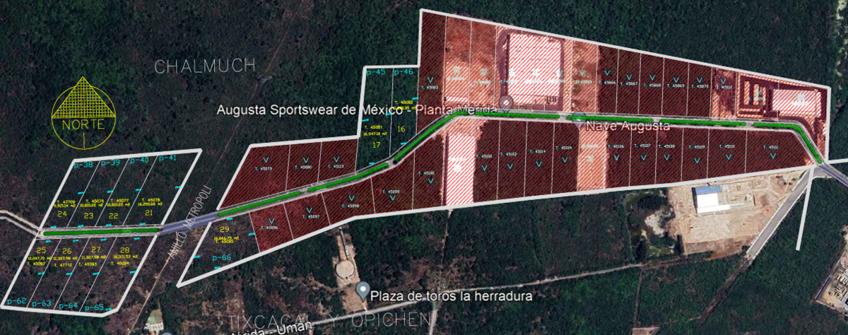 Lot 21 is located in a strategic area within Ejido Chalmuch, Mérida. It is a large and regularly shaped land, ideal for investment projects or residential development.