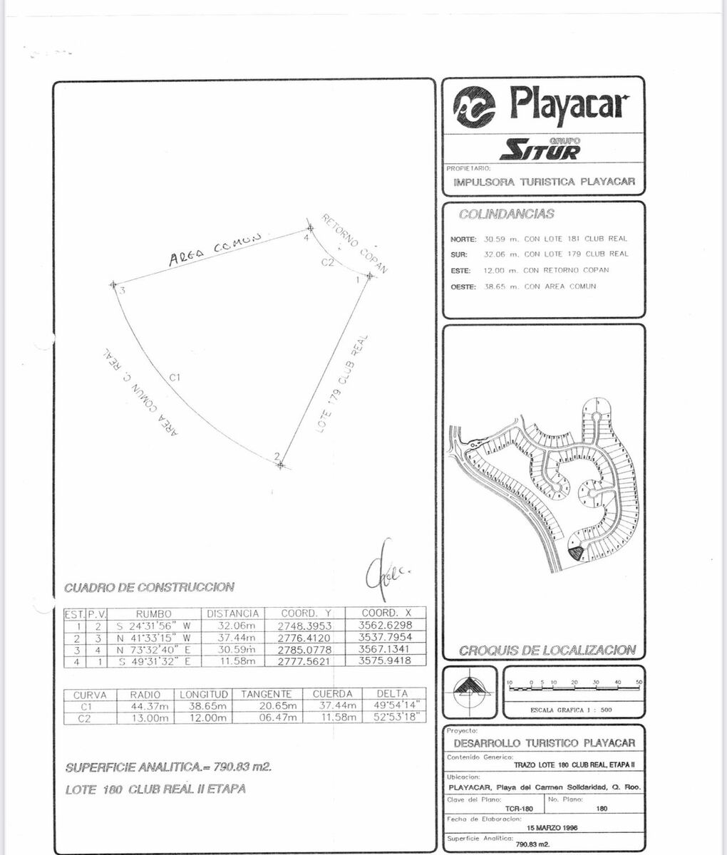 SPO - LOTE HABITACIONAL RESIDENCIAL CON UNA SUPERFICIE DE 790.83 METROS CUADRADOS , CUENTA CON AGUA POTABLE ENTUBADA , DRENAJE , ALCANTARILLADO , CALLES PAVIMENTADAS CON GUARNICIONES Y BANQUETAS DE CONCRETO , ENERGIA ELÉCTRICA , ALUMBRADO PÚBLICO , SERVICIO DE RECOLECCIÓN DE BASURA , LÍNEAS TELEFÓNICAS , TRANSPORTE PÚBLICO , CERCANAMENTE AL HOTEL SANDOS PLAYACAR, HOTEL IBEROSTAR TUCAN , HOTEL RIU TEQUILA, ETTC.