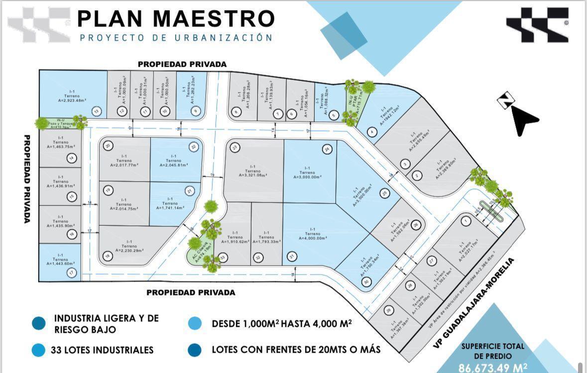 Excellent flat lots with industrial land use for SALE in an industrial park just 200 meters from the Tlajomulco macrolibramiento. Focused on providing comfort, security, and creating spaces that generate value for the user with a total area of 1,088m2.