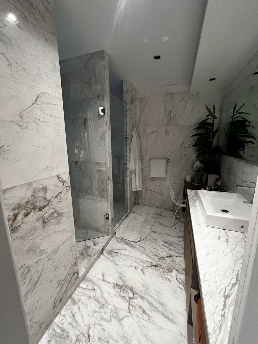 Entering the apartment, you will find the dining area, which has a view of a lovely terrace. The kitchen can be closed or semi-open; this option is possible with a nice protection that makes it simple.