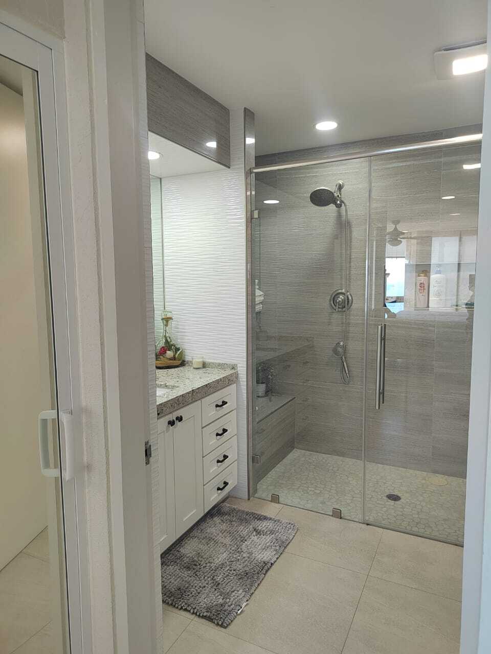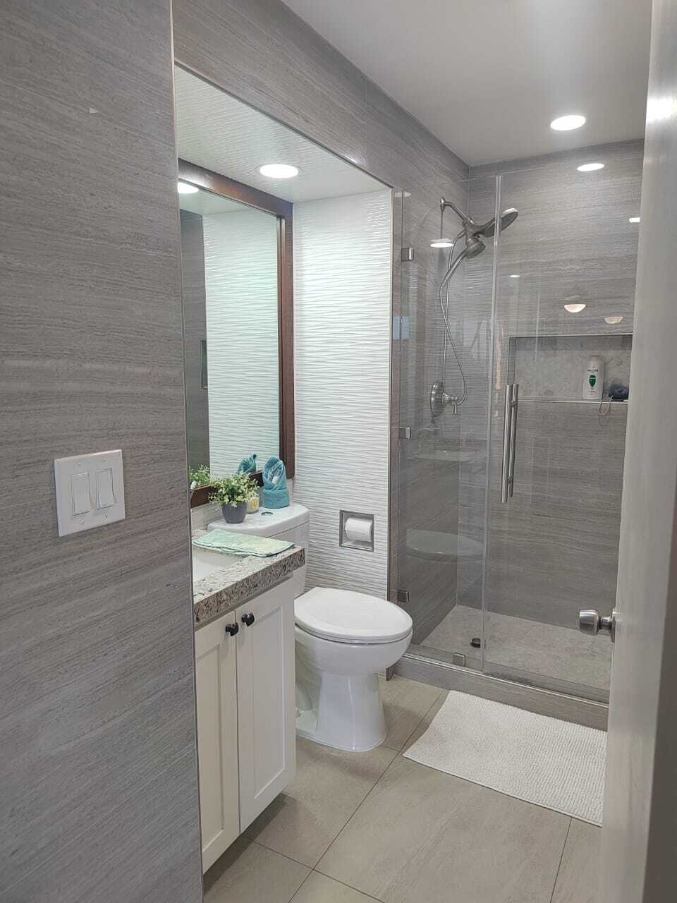 Two full bathrooms with double showers and non-slip flooring, senior-friendly.