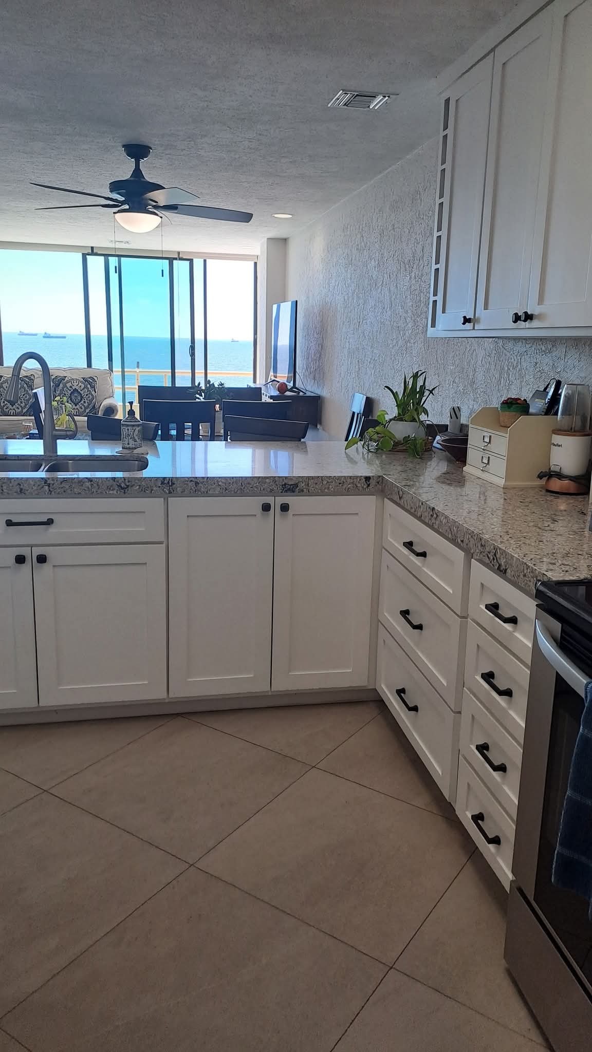 Open-concept living and dining area, filled with natural light and stunning ocean views.