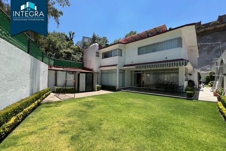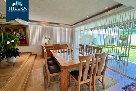 There are 4 bedrooms (the main one with a bathroom and access to a private terrace), 2 of the bedrooms share a bathroom, 3 full bathrooms, 2 guest bathrooms, an office/study with independent entrance, family room/TV room, service room with bathroom, laundry area with bathroom (which can be a 2nd service room), party room with bathroom, pool table, terrace with barbecue and independent entrance, 5 parking spaces, garden with a view of the forest. The property also has a solar panel system, a cistern with a capacity of 50 thousand liters of water, heating throughout the house. Security.Disfruta de esta espectacular casa ubicada en una zona privada de tan solo 5 casas, rodeada de bosques y de fácil acceso. Cuenta con amplia e iluminada sala, comedor, cocina, ante comedor.