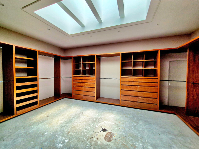 La propiedad cuenta con 4 amplias recámaras, todas equipadas con baño privado, vestidor y balcón y un family room en el piso superior.