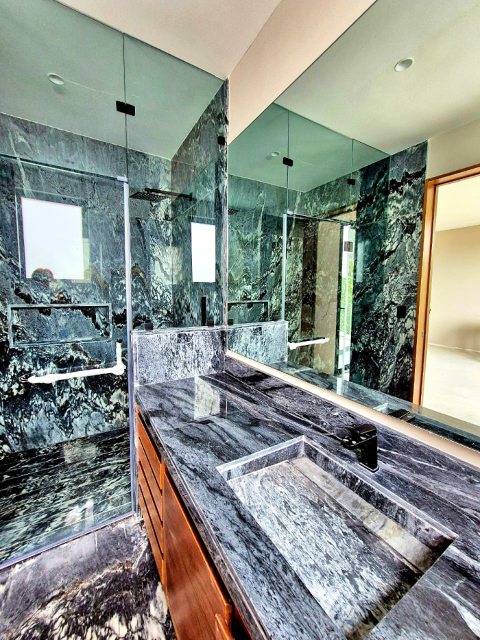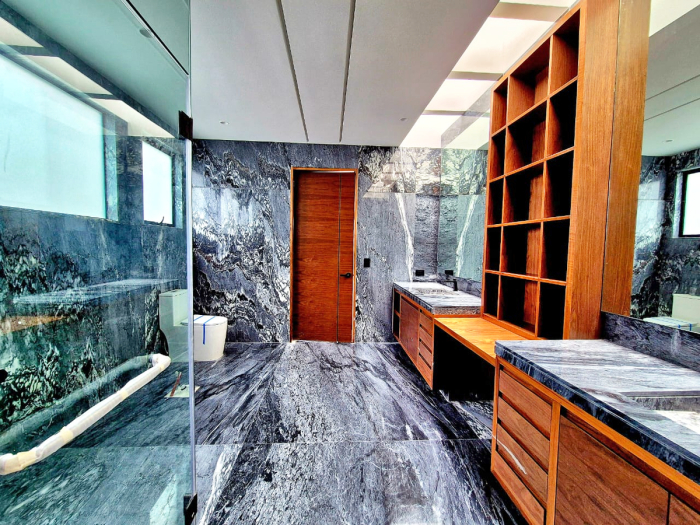 Terminados en fachada y mármol italianos, carpintería en nogal.